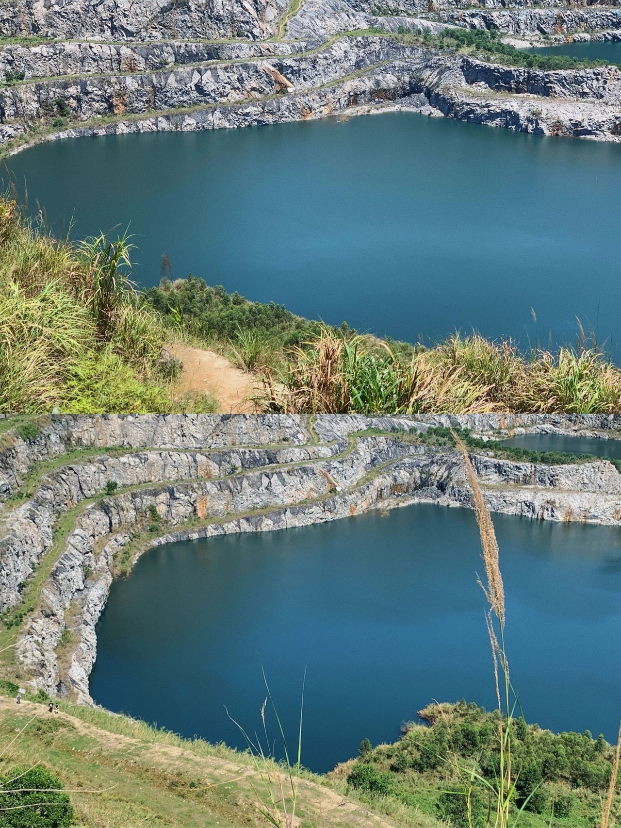 413:00经过补给站,再有一段很陡的下坡路就到了石牙顶天坑,图1/3的位置,拍拍照,找个地方午餐。