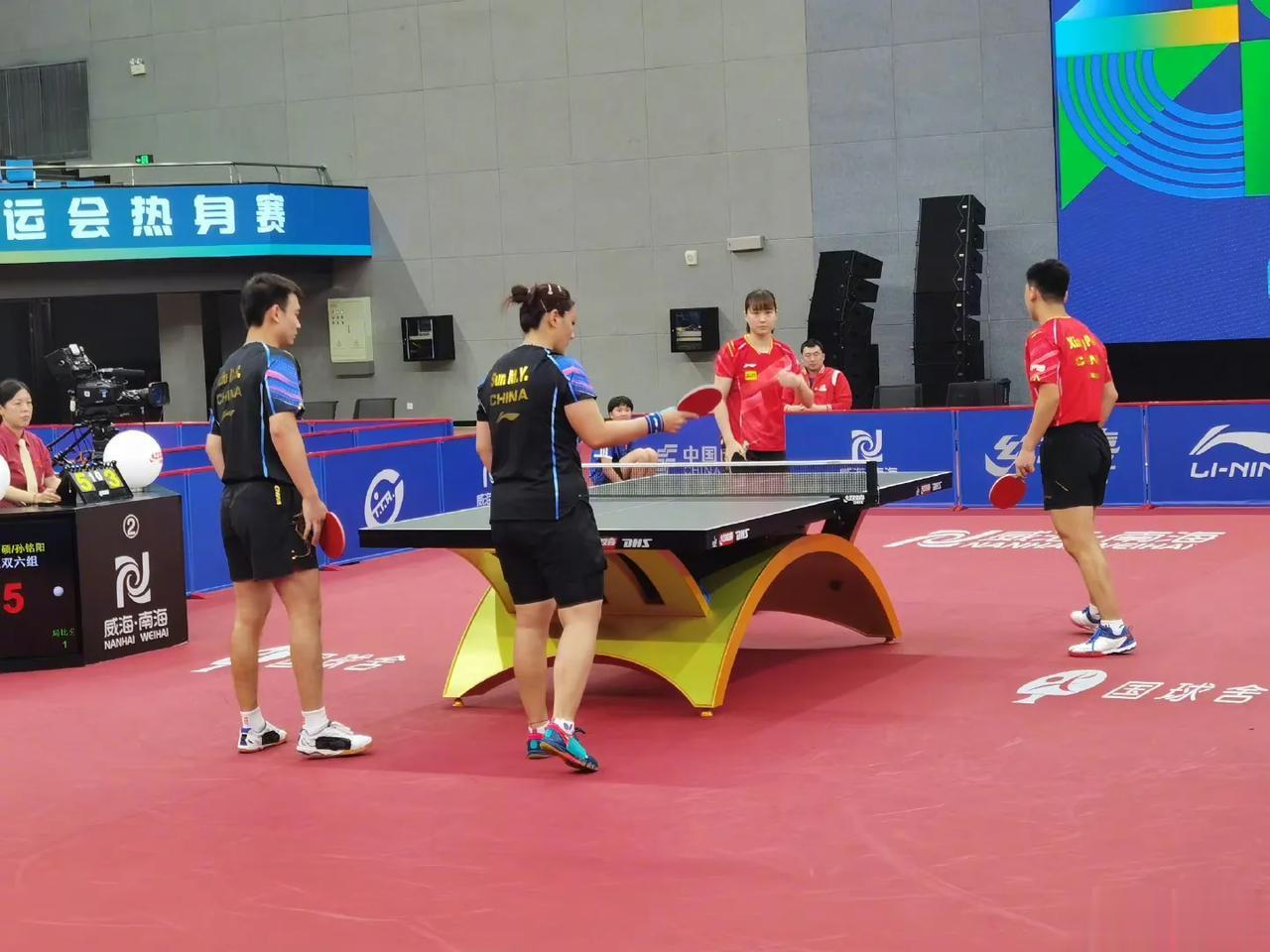 2023国乒亚洲锦标赛及亚运会热身赛混双循环赛第一轮: 林诗栋/蒯曼战胜王楚钦/孙颖莎,梁靖崑/钱天一战胜林高远/王艺迪 🏓林诗栋/蒯曼3-2王楚钦/孙颖莎【11-6,11-6,6-11,12-14,13-11】 🏓刘丁硕/孙铭阳3-1向鹏/刘炜珊【11-7,11-8,12-14,11-8】 🏓袁励岑/李雅可3-1徐海东/王晓彤【11-6,10-12,11-7,11-6】 🏓梁靖崑/钱天一3-1林高远/王艺迪【4-11,11-9,11-7,11-7】