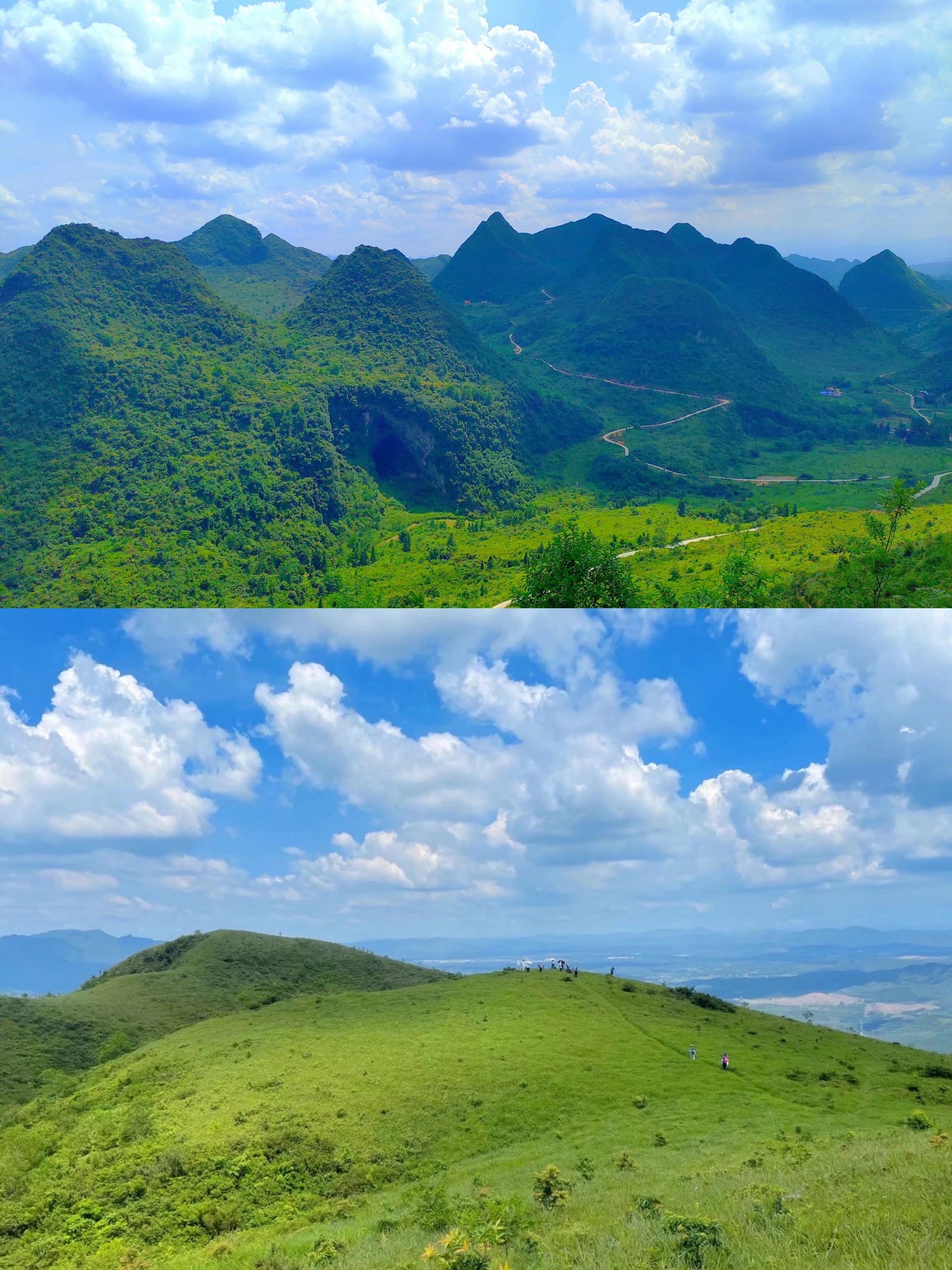 一路看尽峡谷✓溶洞✓喀斯特峰林✓天坑✓石林✓古村,到了终点,就能看到青山环绕的大草原啦🍃