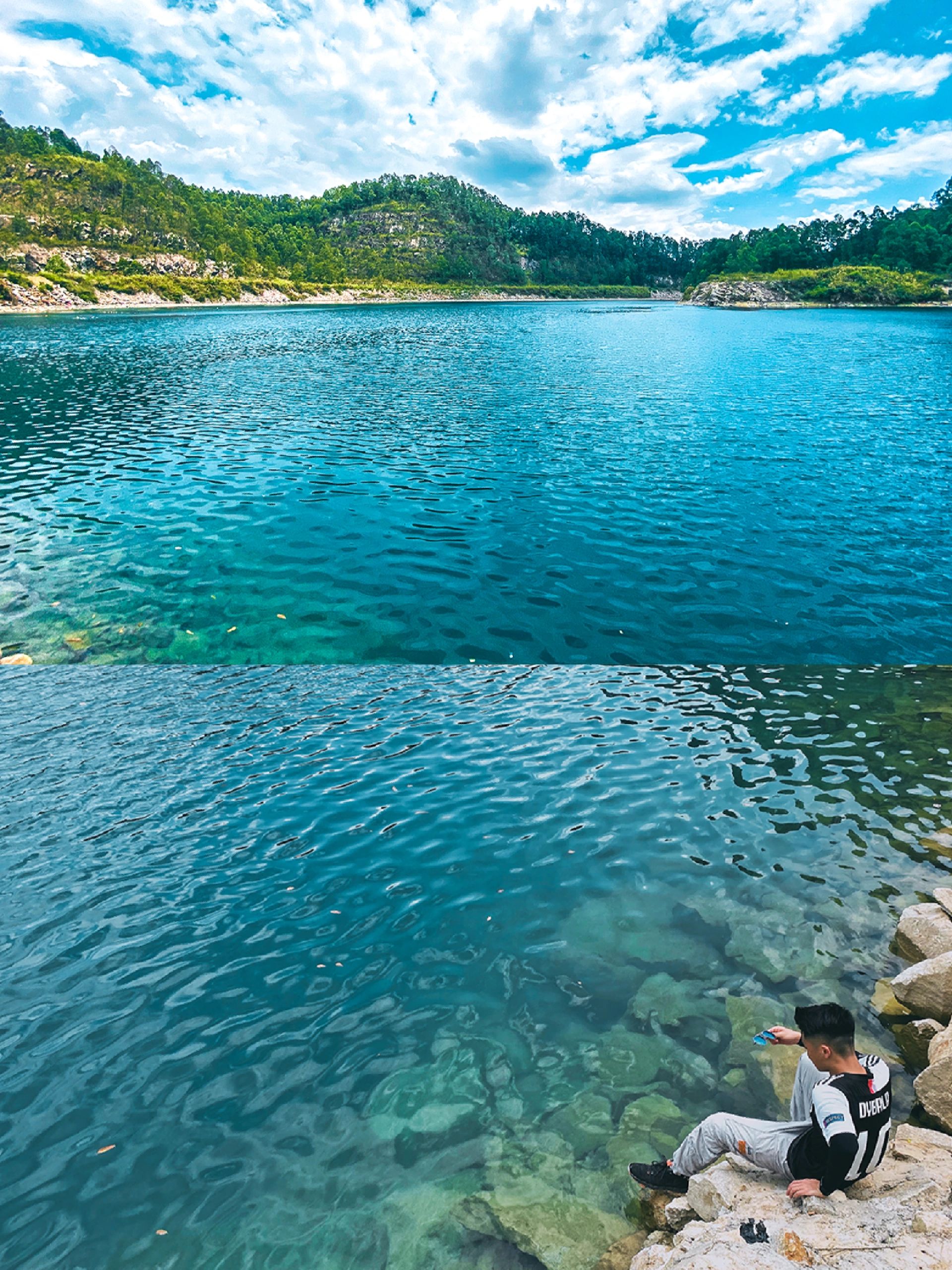 👉大天池:浅蓝色,站在高处可以看大天池和城市山林的景色,可以为止拍摄“惊险”图、背景正面都是极好看的