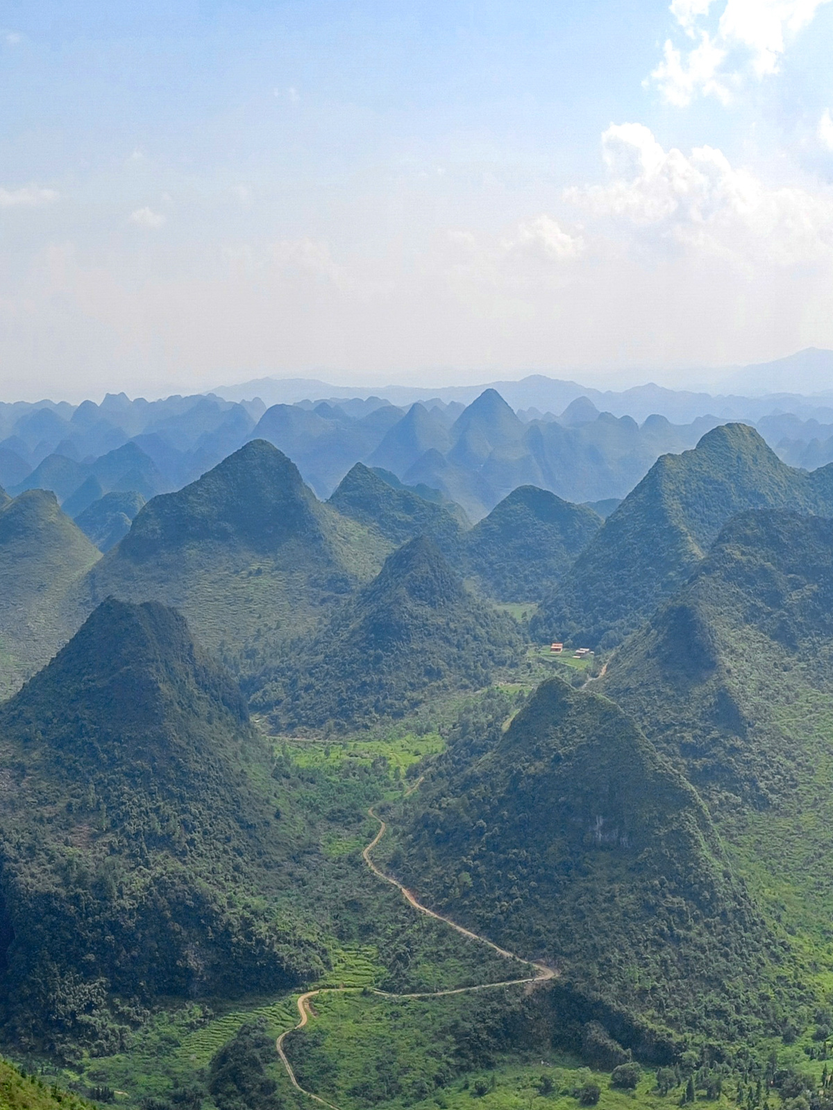 ● 山顶有一个360度观景平台,航拍效果特别好,能看到连绵起伏的峰林.