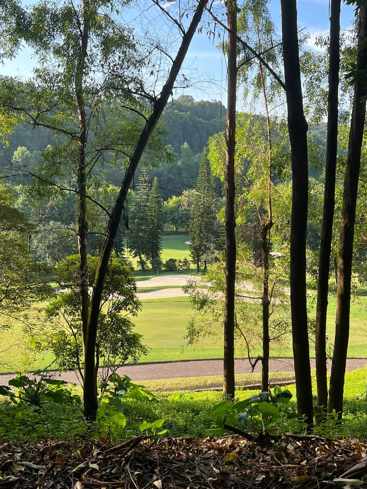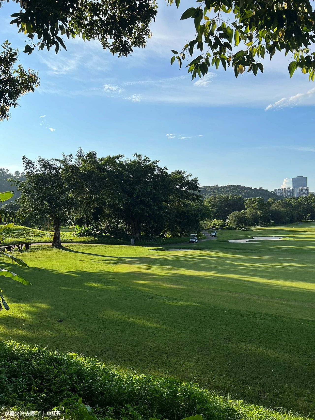 🔹一路左手边是山,右手边是高尔夫球场,大片的草地在阳光下格外好看,拍照肯定很出片!