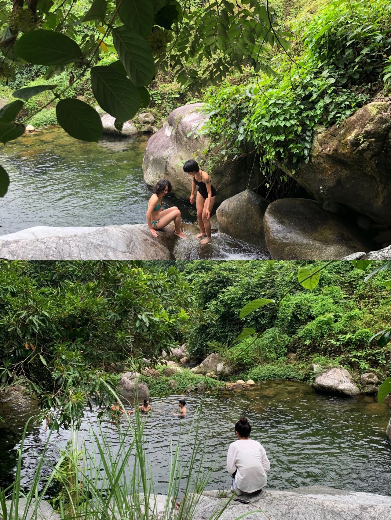 潭里有突出的大块岩石可供站立休息 石头光滑圆润不会刮到脚 在这里游野潭子好快乐!