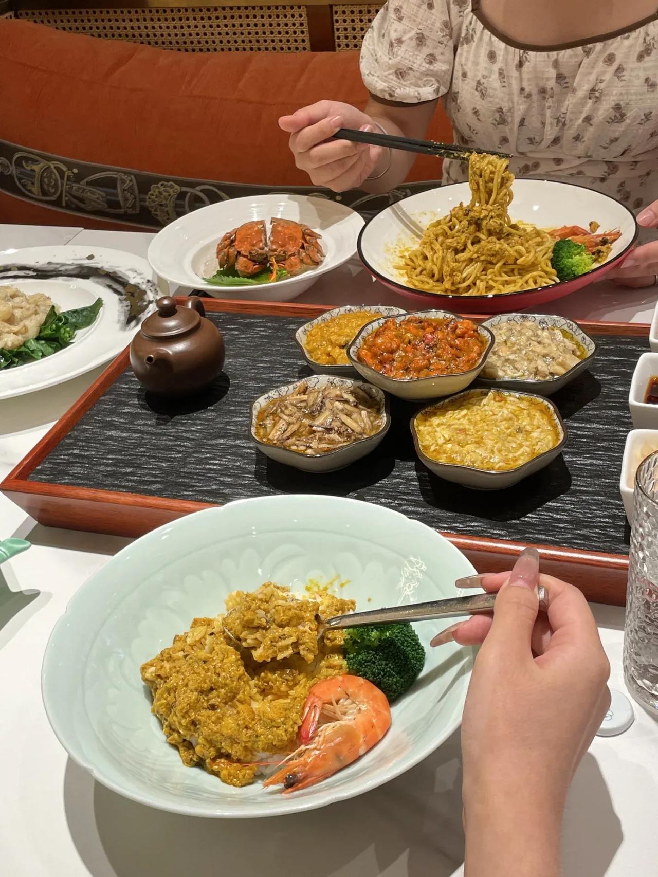 隔段时间就会来吃的店,蟹面太好吃了! 在成都我又发现了一家好吃的店 就在金融城附近的华商一楼 每次来都会吃掉好几碗面呢 金秋九月正是吃蟹的好时节,赶紧行动 ✅蟹尊巨无霸 用餐人数是四人以上的话,可以选着点上一份哟 蟹黄、蟹柳、蟹膏、蟹粉和蟹钳,一次性拥有 据说需要拆解25-30只大闸蟹才出一份 很是物超所值呢,还搭配还小菜和蟹醋 根据喜好随心搭配加入拌面中,真的鲜掉眉毛~ 面/饭都是可以续加的 ✅醉蟹 蟹又大黄又多,带着淡淡的酒香 一楼下去鲜香肥美,真的很好吃呢 ✅蟹粉虾仁大馄饨 主打一个皮薄馅大,内有蟹黄、虾肉、蟹肉等 一口满足,清淡鲜香,很适合老人小孩呢