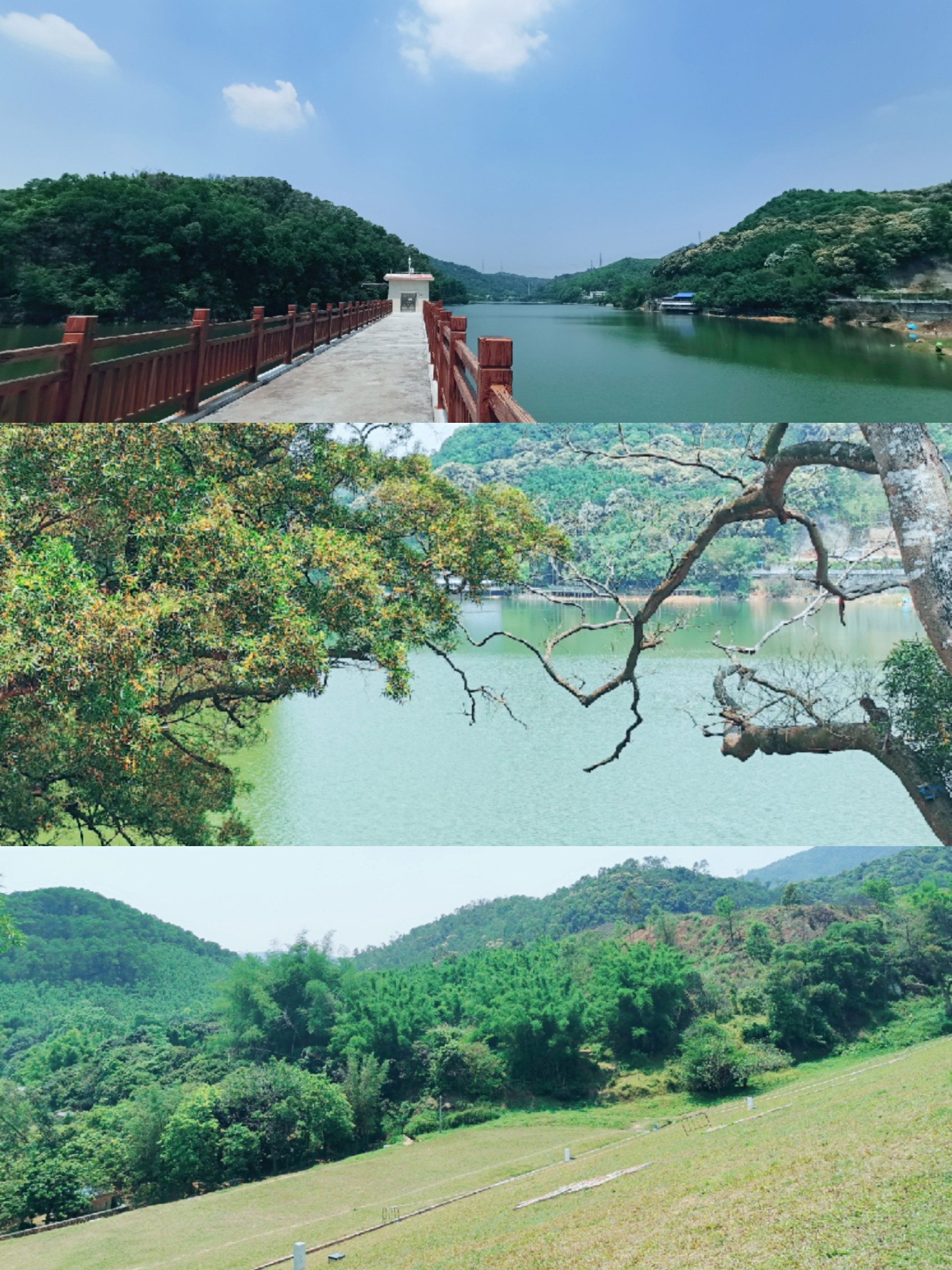 水库旁有一片草地,可以自己带上滑草板来玩哦不过草地没有遮阳的地方,比较晒,最好自己带上帐篷⛺️啦!