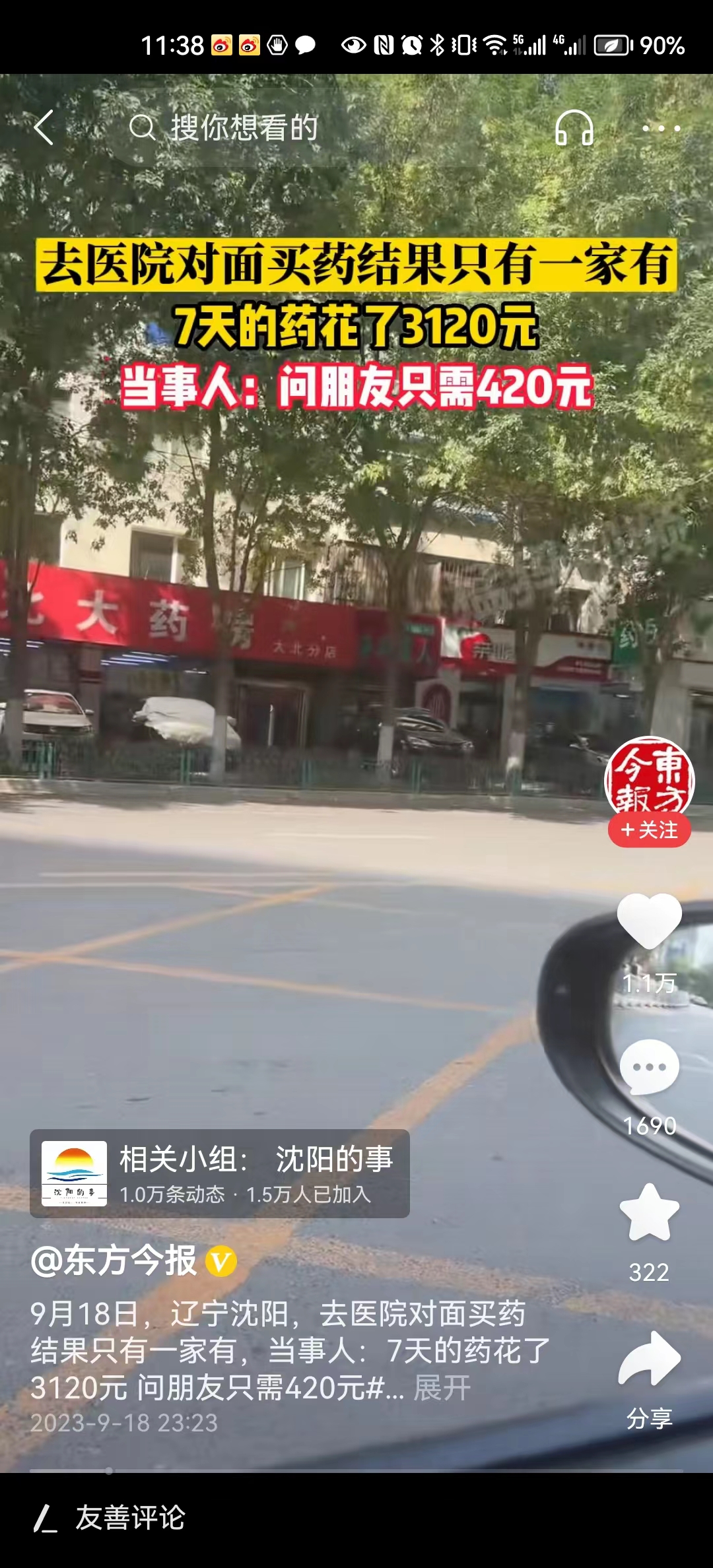 其实过去曾经也有人反映过这类事情,但是绝对没有这个视频中如此之夸张。事发于辽宁沈阳,一位民众在医院看完病后,医生开出处方,说让到医院对面的大药房去买,结果对面几个大药房只有一家药房有卖,最后划价发现,花了3120元。之后小伙问一下朋友,朋友说这点药在其他药店买只需花420。
