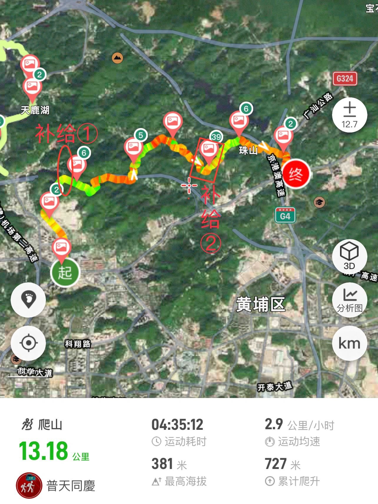 🍭🍭🍭补给:全程有两三处补给(参考最后一张图)