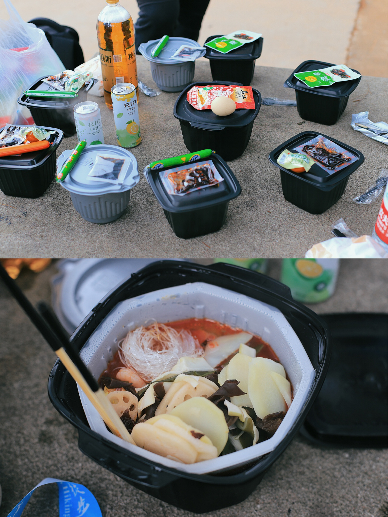 徒步的小伙伴可以像我们一样带上自热饭,中午在水库休息的时候就可以享受野外热辣辣的美食。