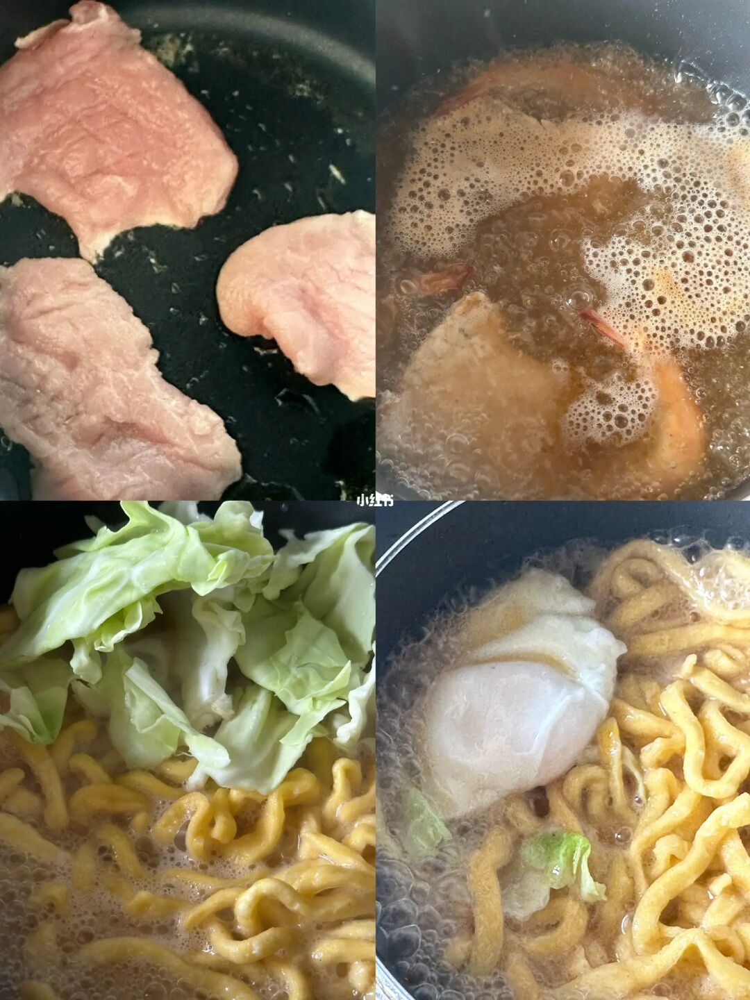 其他:白菜、虾、猪肉片、鸡蛋、沙茶酱、盐、胡椒、葱花