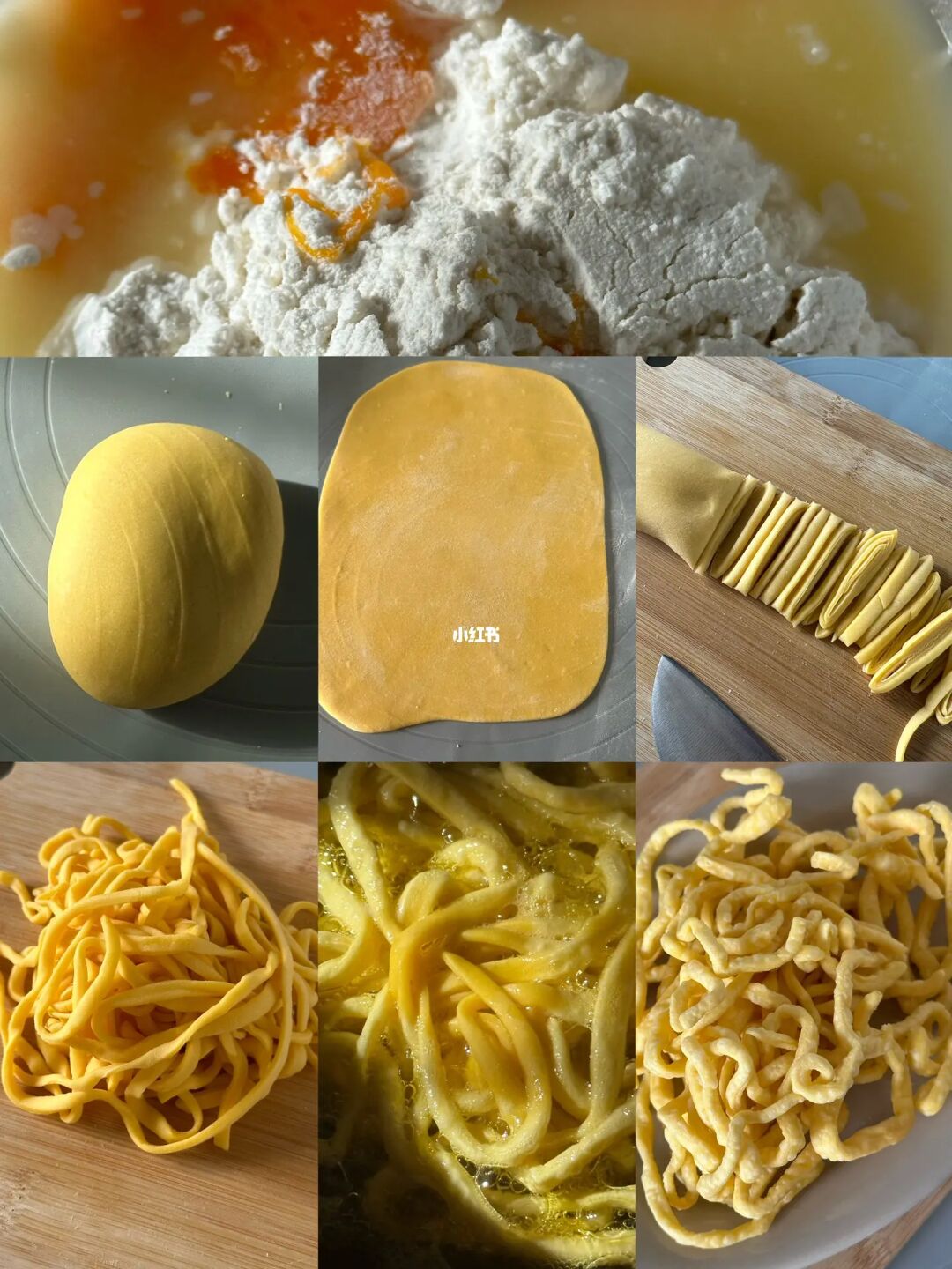 面条:80g面粉、25g蛋黄、25g水、1g盐
