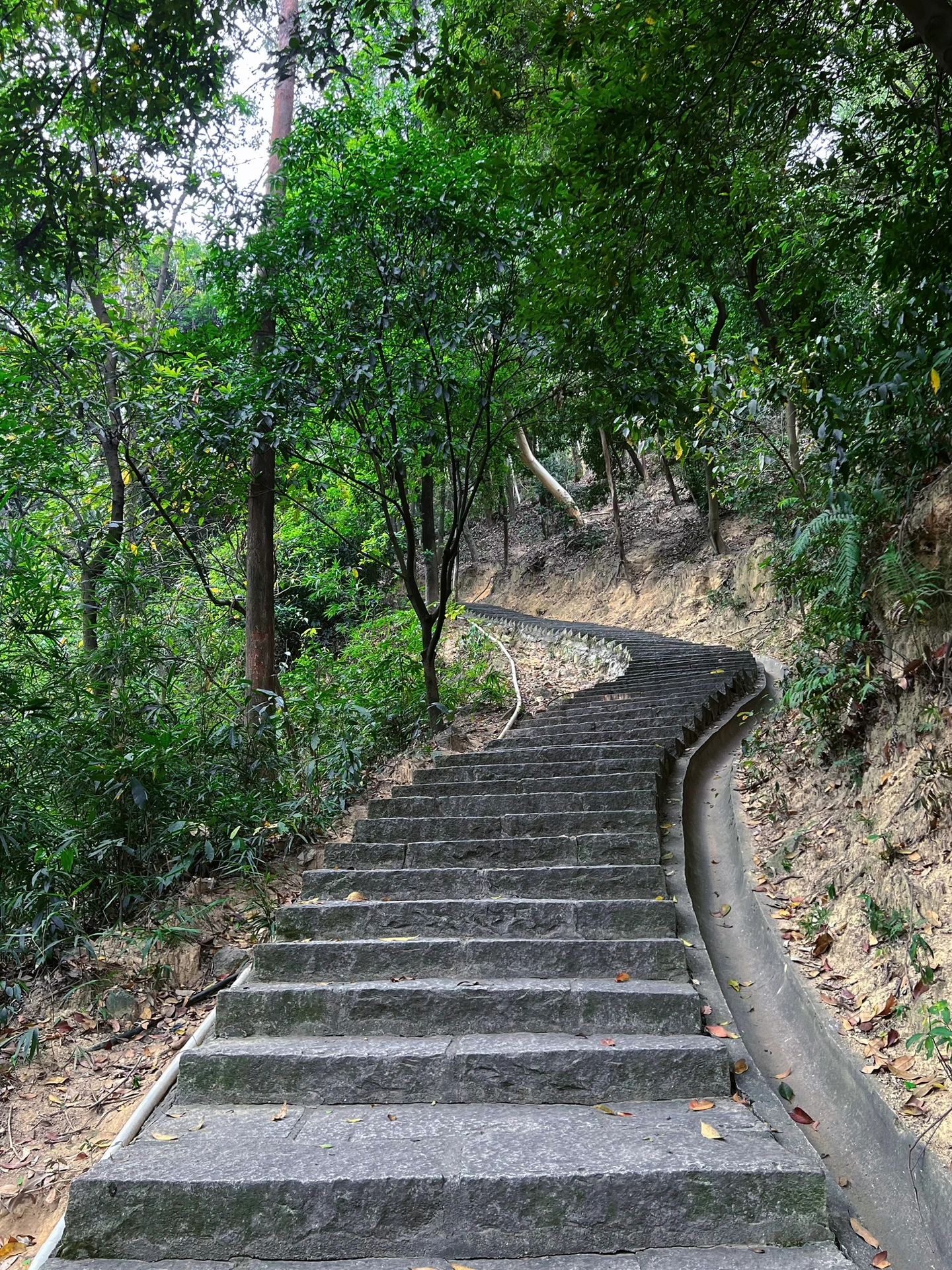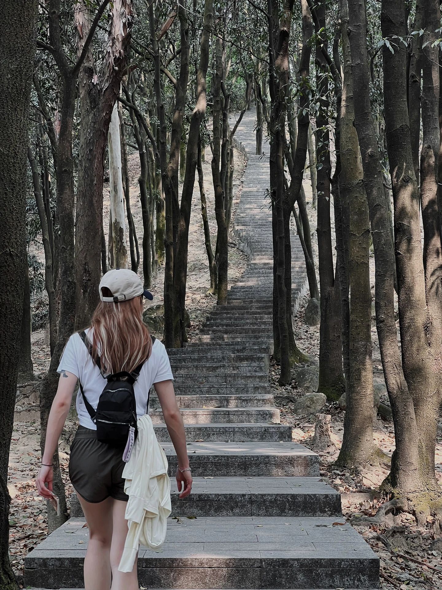 路线:我们选择 从北门上山走楼梯,下山往回走走另外一条小路也是楼梯直接通往马路那边下来!直接回到停车点。