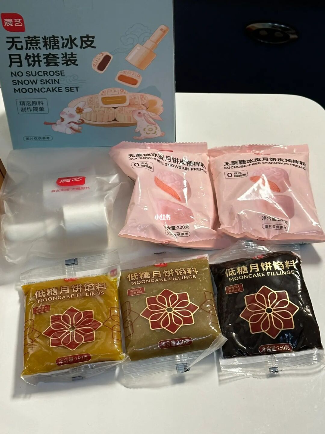 展艺无蔗糖月饼套装(包括冰皮预拌粉、分别是莲蓉和板栗和红豆口味的三种无蔗糖馅料、月饼模具)可可粉、南瓜粉、红曲粉、黑色色素