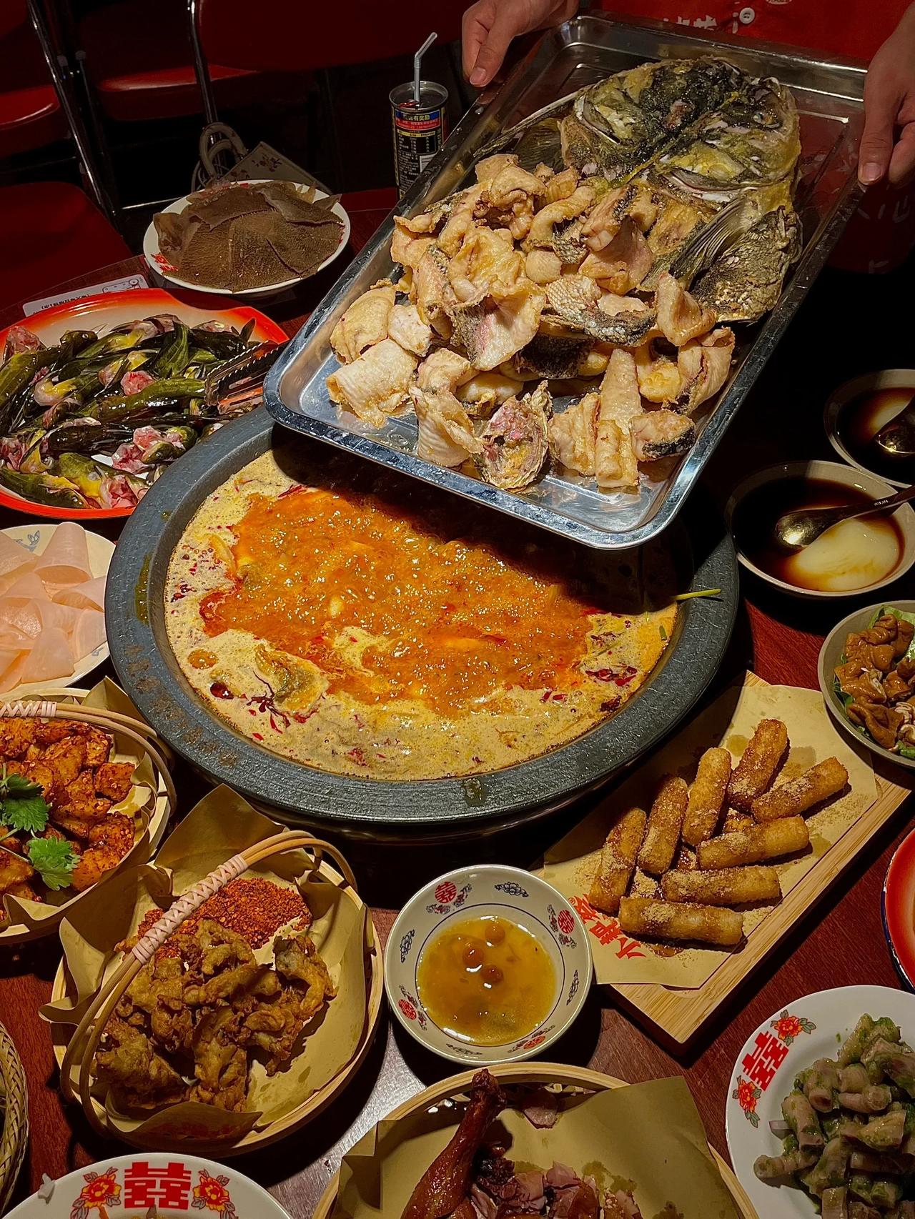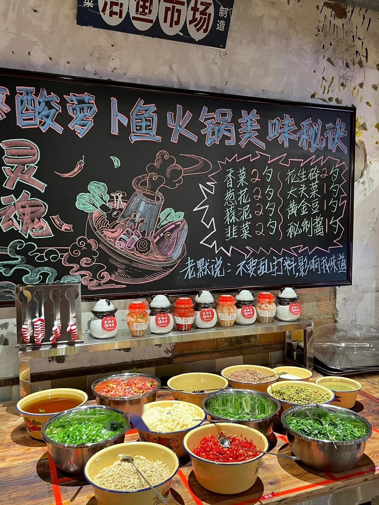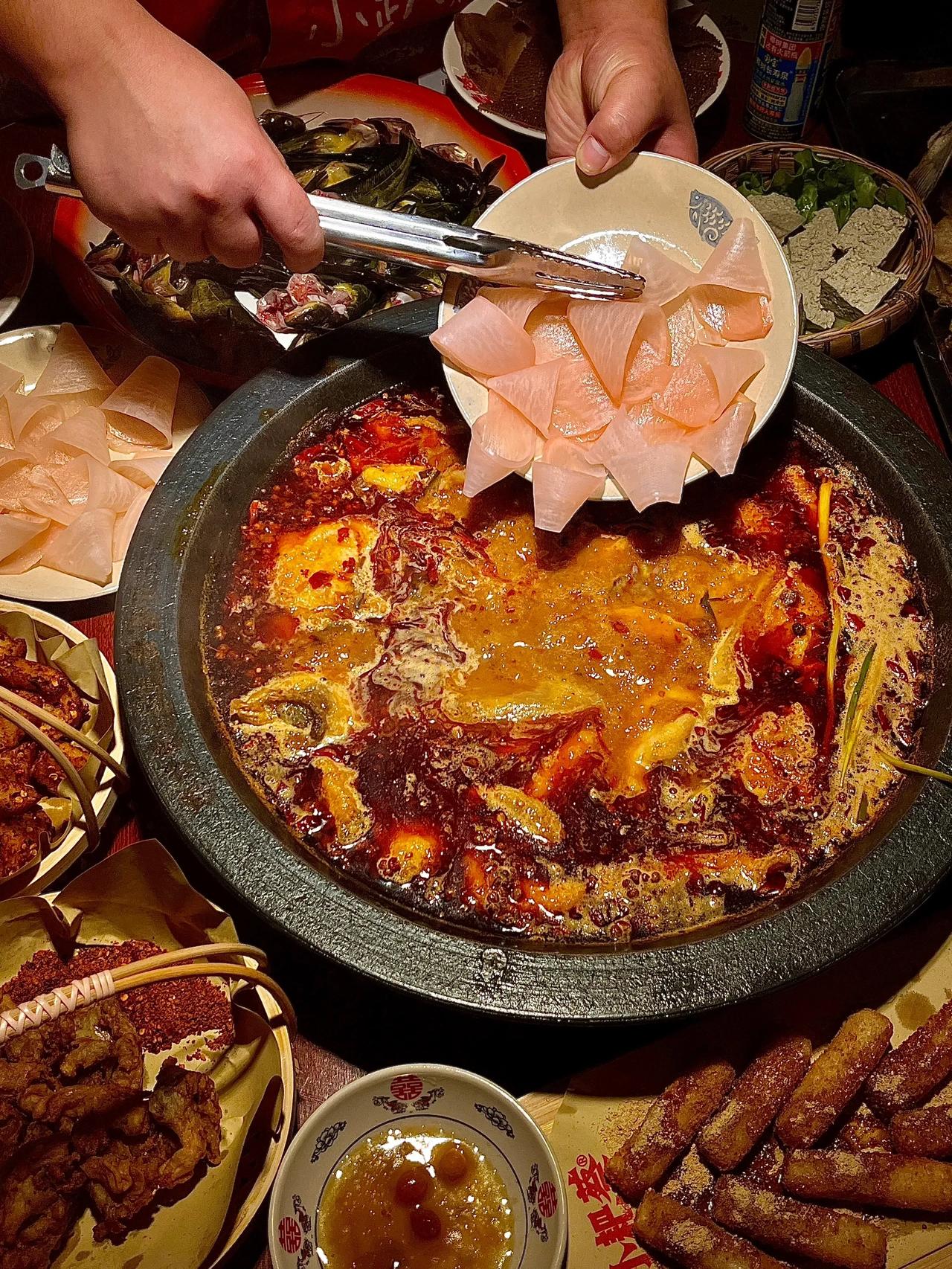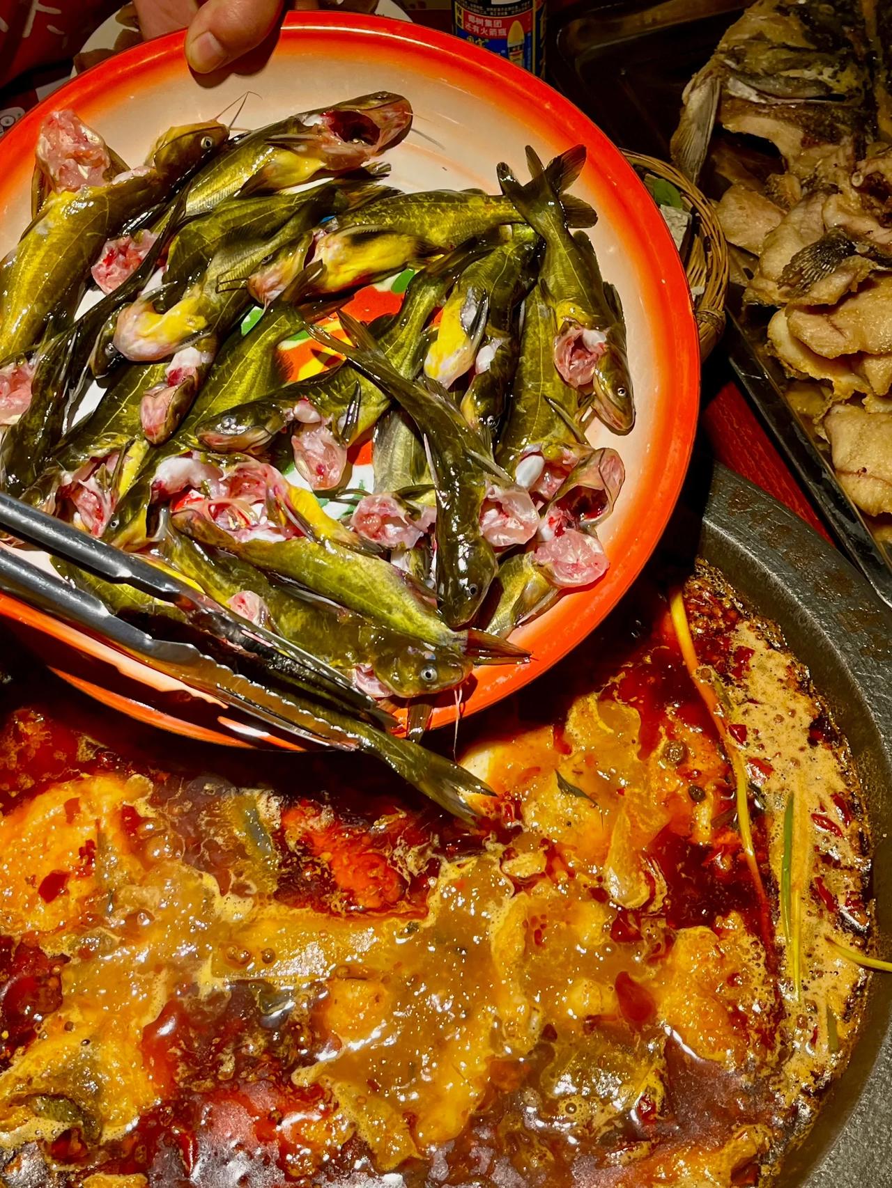 成都人吃鱼真的有一手… 跟着夺师来吃的这家… 开在新华公园路边菜市场里 生意好 好多叔叔嬢嬢大爷大妈来吃! 吃鱼前先把酸萝卜放进锅里入味 然后把过油炸出酥皮的鱼🐟放进锅里烫 吸满汤汁后又酸又辣 吃起来好爽! 还有美蛙也新鲜好吃! 本地人喜欢点鱼泡、肥肠、毛肚这些煮进去一起吃!过瘾! 我还很爱他家的炸平菇和炸鱼! 趁热吃真的香! #成都头条#