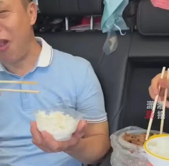 这位湖南男子,开车回家带着电饭锅,还带着自己之前酱好的牛腱子,以及鸡爪鸭爪等东西。在高速堵车时到了服务区,利用服务区的电源,用电饭锅把米饭蒸熟了,把菜也热了,然后一家人在车里开启了野餐模式。