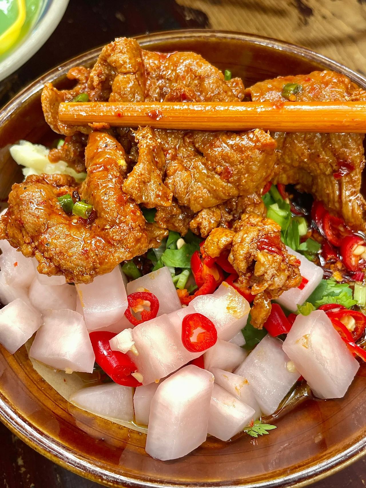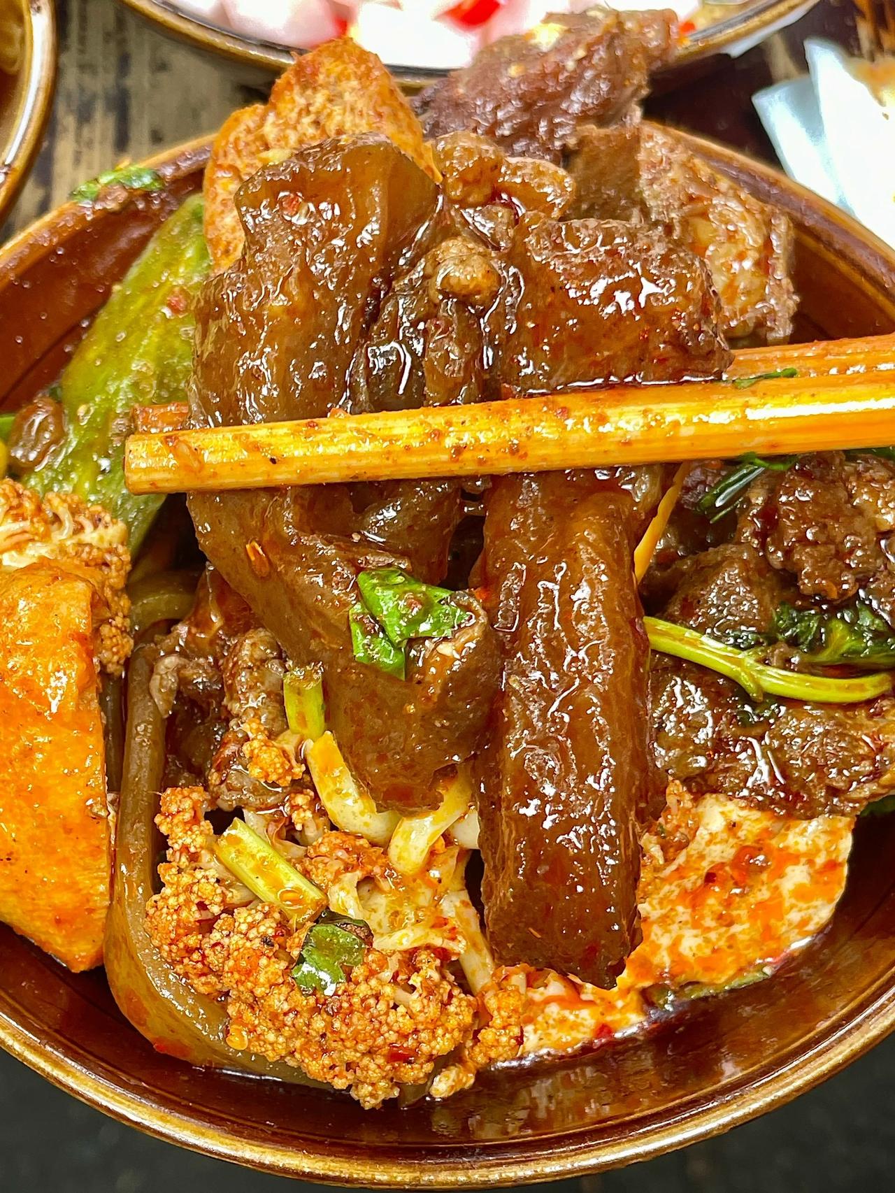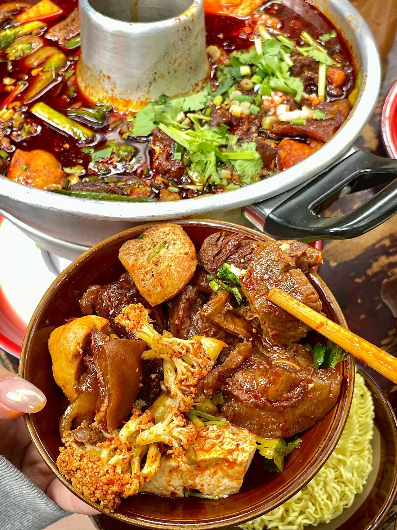 如果你来成都只待一天…… 致民路这条街 无论何时都透着成都最古早的烟火气息 每个馆子都座无虚席 尤其老一辈的阿姨叔叔也很爱 我啊……真的会对成都这条街有滤镜好吗! 📍牛肉小火锅 是我巨巨巨想推荐你们来吃的! 口味:✔️豆花牛肉 心中南波万 大块的牛肉、DuangDuang的老豆花 各种素菜 汤汁煮的入味到不行 麻麻辣辣的 蘸水加入酸萝卜一口入魂 ! ✔️鲜烧牛肉锅 牛肉大坨大坨的 很厚实 推荐➕份方便面 那个汁水泡着面条 真的别提多香了#成都头条#