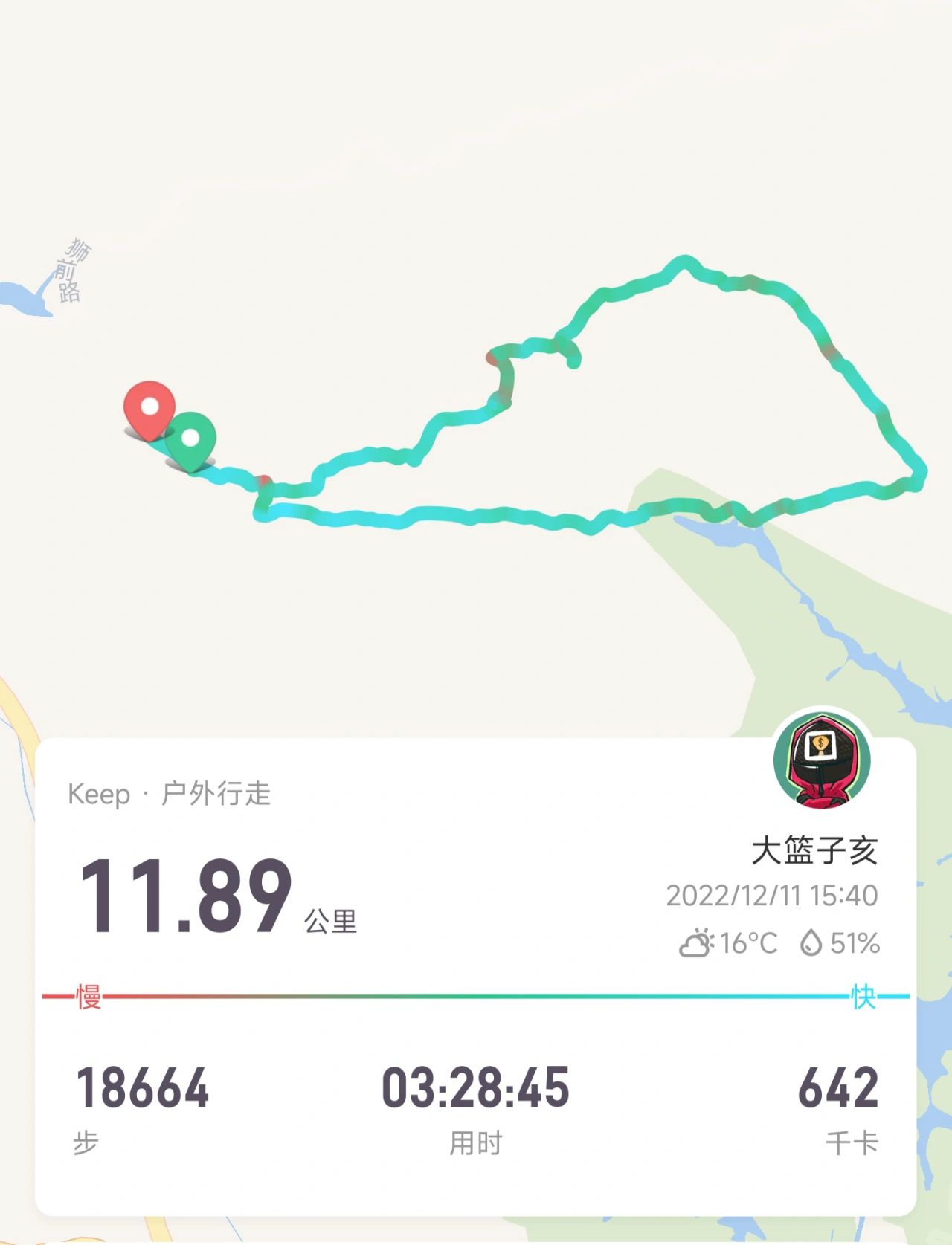 沿途跟随挂在树枝上的△绑带△标识,上山下山,再沿着水库边走,最后回到原点,总共花了3.5个小时。
