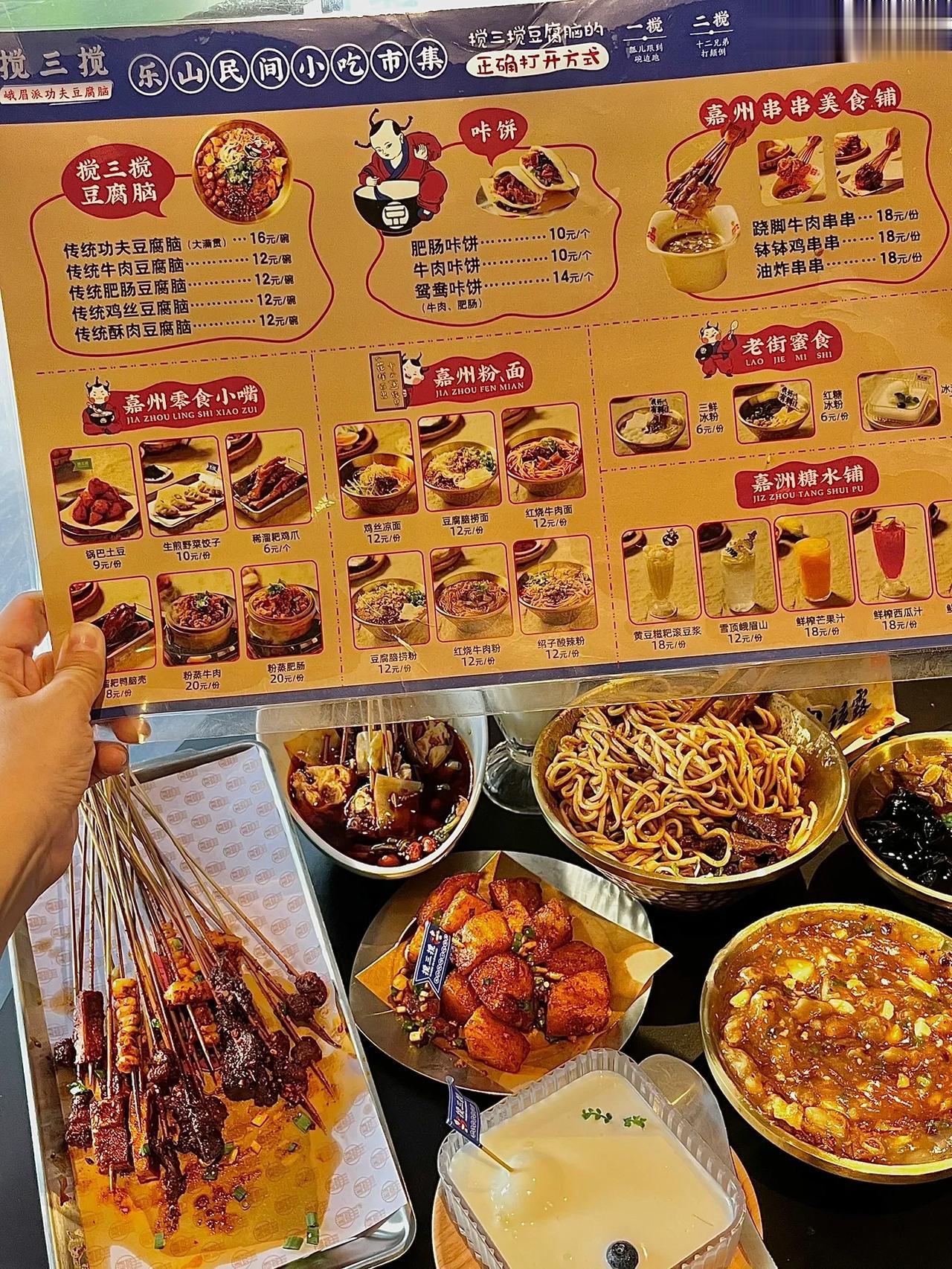 他家在乐山真的没对手!!! 吃完海汇源烧麦,旁边乱逛发现的他们家,满是料的大满贯豆腐脑,趁热拌匀,香的人受不了,还有豆腐脑捞面,咔饼,钵钵鸡,锅巴土豆…价格便宜,味道还都很绝!