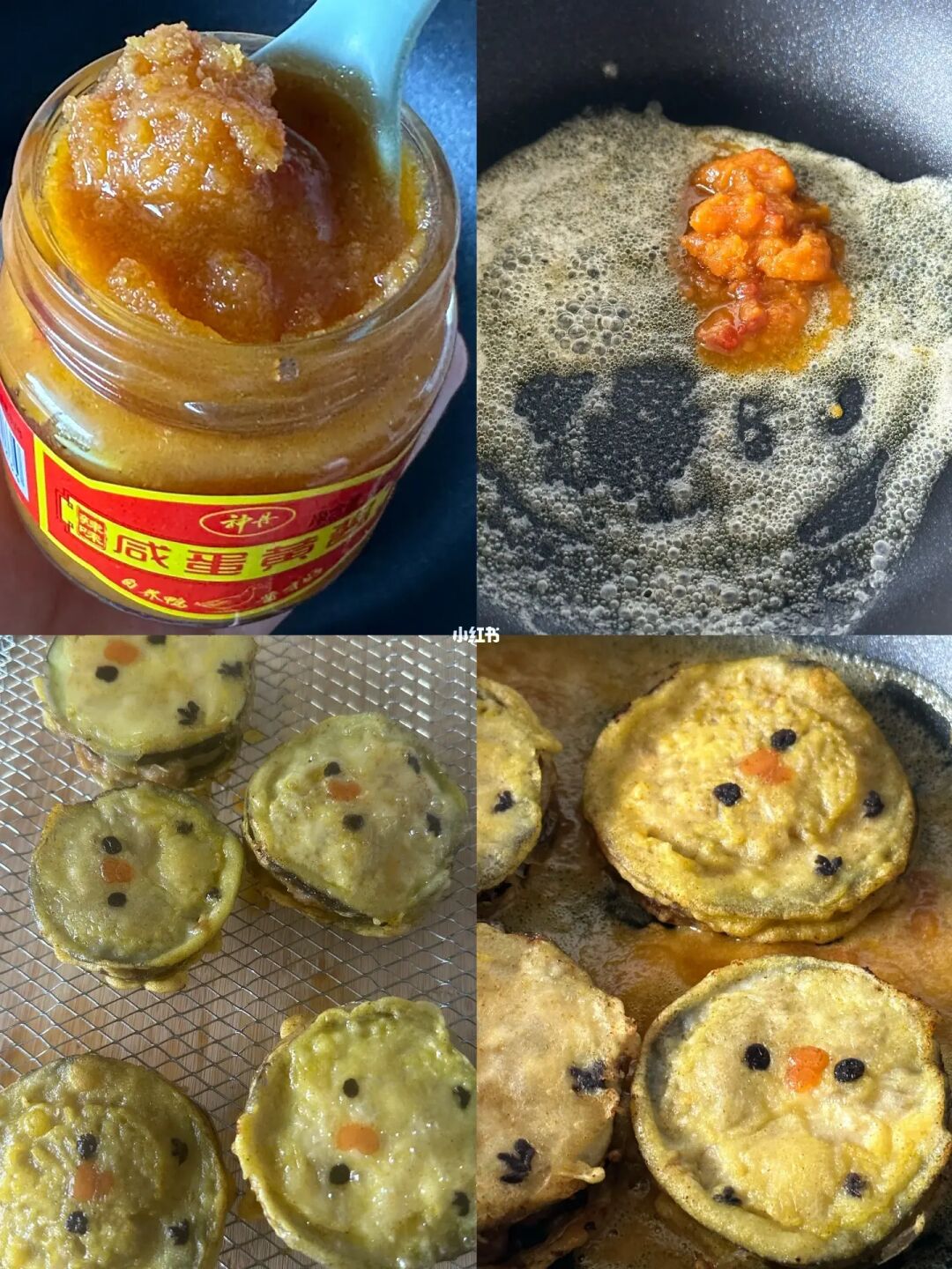 酱料:一小块黄油、辣味咸蛋黄酱(第一次吃到辣辣的咸蛋黄味!太神奇了,是有一股泡椒的那种味道,搭配茄饼这种咸口的食物真的很下饭!而且像这种国货老牌子吃着也放心~)