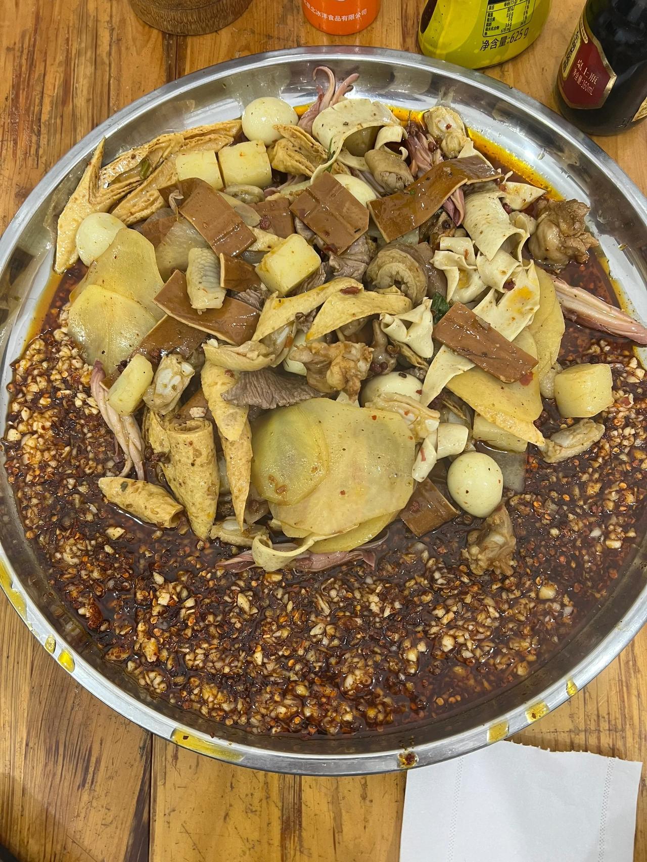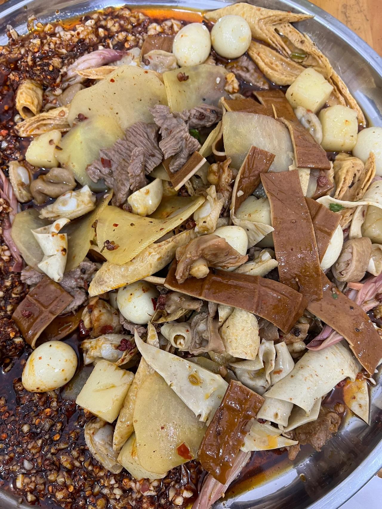 成都好吃的小店 成都好吃的苍蝇馆子 还得是抚琴路白果林附近啊 · 老式麻辣烫的味道跟现在连锁的麻辣烫 区别真的很大 这家老板以前推车车在小区里面卖手提串串 后面在中学门口开了店 也卖了很多年了 从一个门面到三个门面 高峰期可能还要排队 生意嘿好 · 菜品很新鲜 经典菜是兔腰和鸡肾 我吃不来这两个 但朋友说一抿就化 菜品是自选小盘菜 种类很多不是冻货 郡肝 鸡脚筋 鱿鱼这些肉菜都很新鲜 香菜牛肉每次都要来两盘 荤菜12一盘 素菜4元 基本上人均50以内可以吃撑 · 老板会分熟的快的和慢的分开烫 蘸料就是辣椒面和更多很多很多蒜 然后分多次淋上热油 能激发蒜的香味 大蒜爱好者真的在这家狂喜 · 煮菜的原汤比较绝 台面看起来不太干净 很难评 但是基本吃这家我都没有拉肚子 · 隔壁子还有百万串烧兔头也很好吃 除了麻辣烫 脆绍面每次都要打包带走的程度 但是相对眼哥 百万价格会稍微贵一些 反正抚琴这一带好吃的真的太多了 吃苍蝇馆子可以优先选择这附近的 #成都头条#
