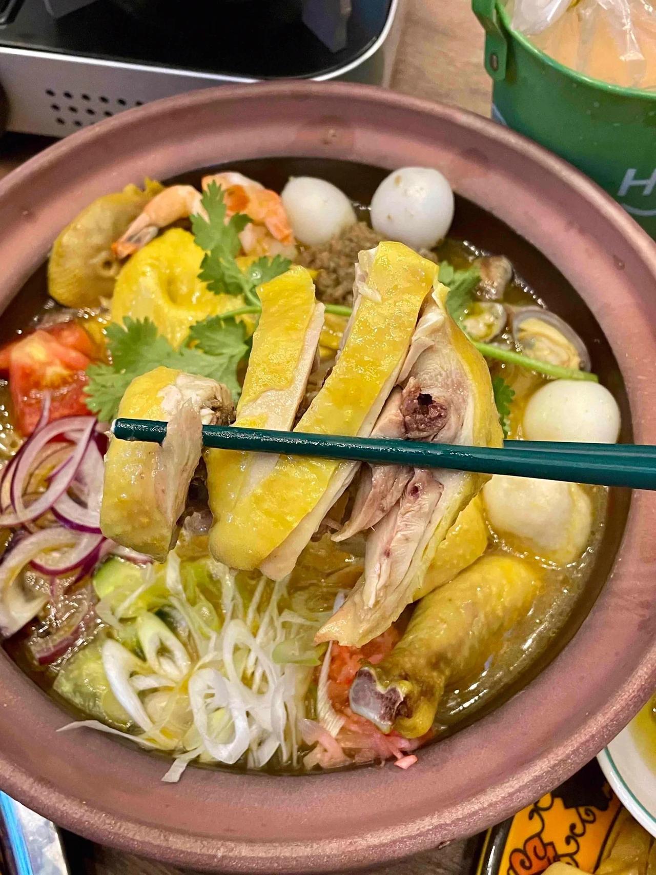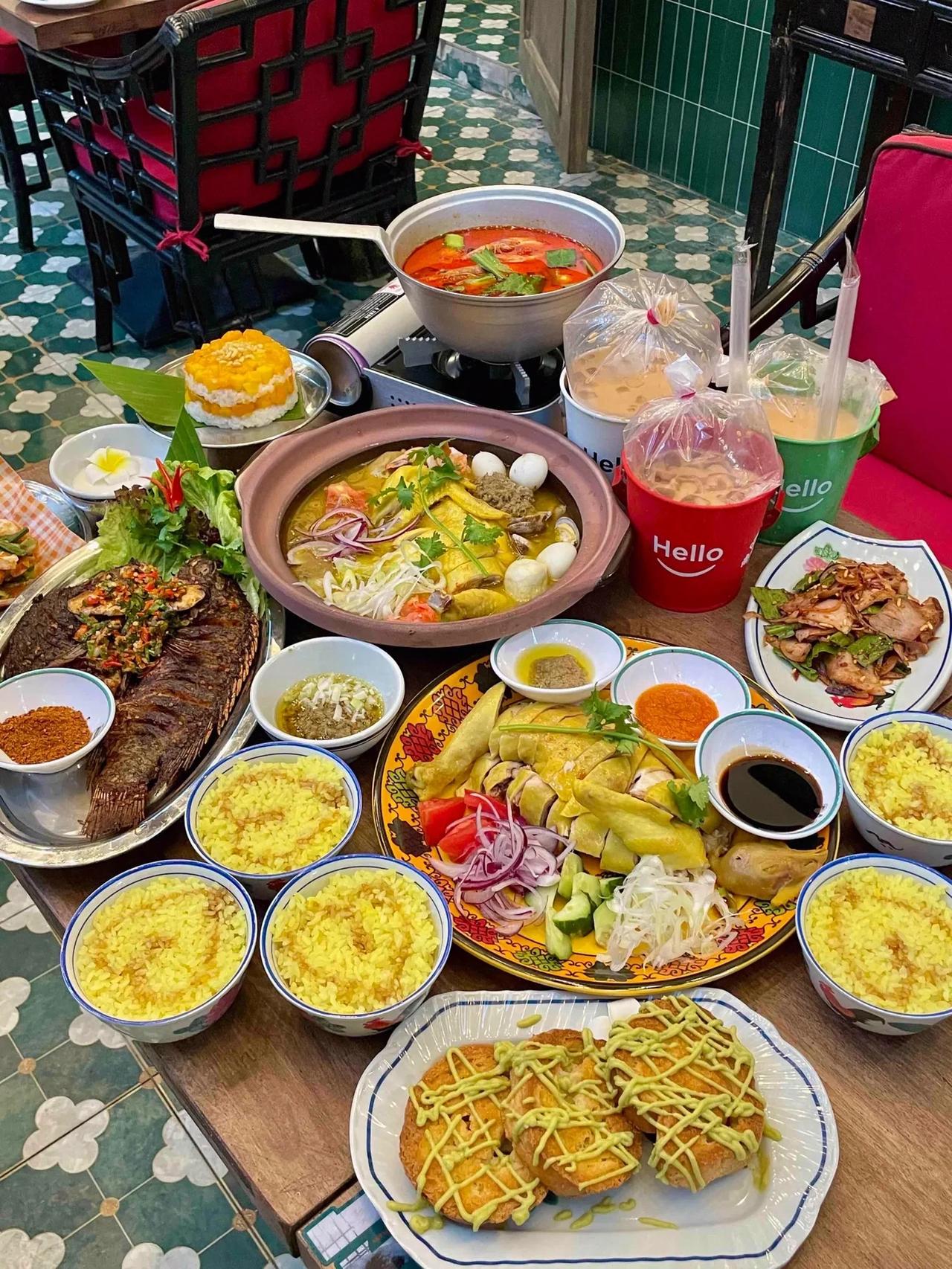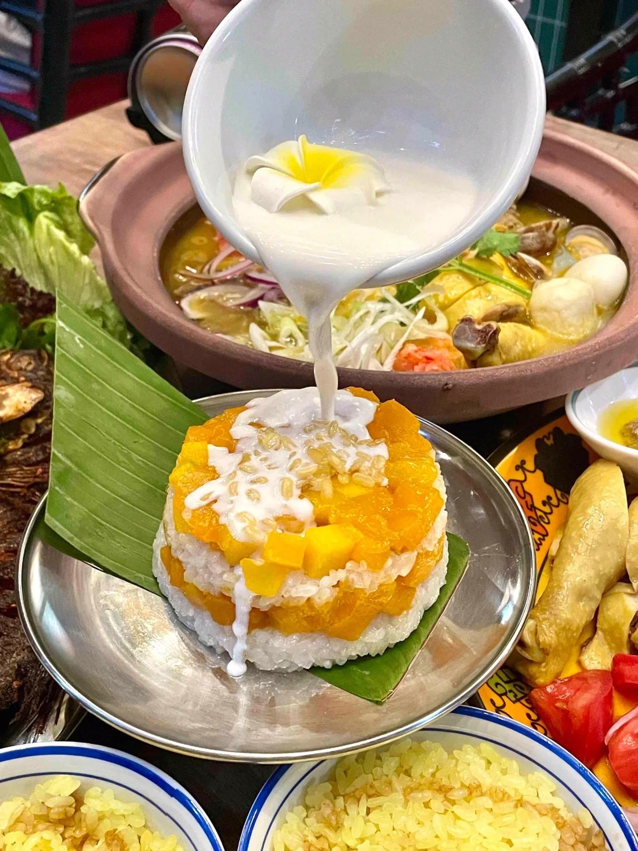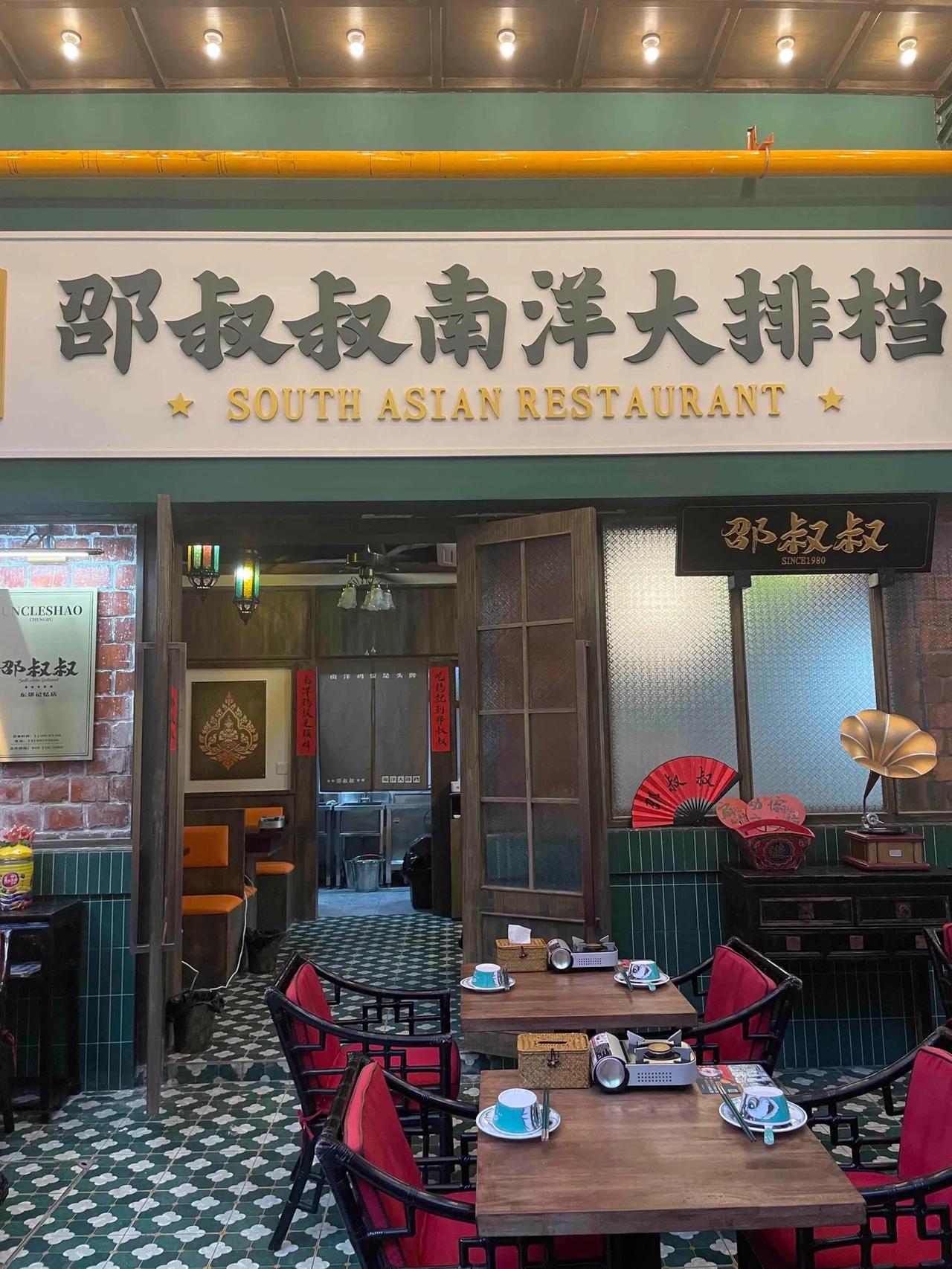 性价比超高的大排档终于开到东郊记忆啦! 和姐妹一起逛东郊记忆,从北门进去正好可以打卡拍照成都墙📷 逛一逛旁边那条街看到了新开的这家店!! 点了一些招牌菜好好吃啊🤤而且还是宠物友好餐厅🍴 ✔️招牌南洋鸡: 不愧是招牌菜🤤鸡肉好香好嫩 鸡皮q弹、鸡肉滑嫩再搭配上马来沙姜酱 独特风味非常值得一试!还有其他8️⃣种酱料 ✔️芒果糯米蛋糕: 芒果配上糯米一整个东南亚风味 小蛋糕造型好可爱 再淋上椰汁🥥 一口接着一口 香甜软糯~ ✔️冬阴功汤: 冬阴功汤的味道很正宗,食材都很新鲜 里面有大虾花甲还有鱿鱼,还可以边吃边加热 ✔️沙姜鸡煲 我才知道原来沙姜不是姜!!但是和鸡肉搭配起来可以增香去腥,一点也没有姜的生辣 ✔️特色鸡油饭 鸡汤配上米饭!每一粒米都吸满了鸡汤 不愧是邵叔叔的招牌🤤一点也不油腻! ✔️夜市手撕罗非鱼: 炭烤的罗非鱼里面塞满秘制香料 烤完外皮酥香,里面肉质鲜美 ✔️斑斓黄油饼 想知道酱料的秘方!!邵叔叔自制的斑斓酱椰香十足 搭配上烤制后的黄油饼酥脆奶香😋 #成都头条#
