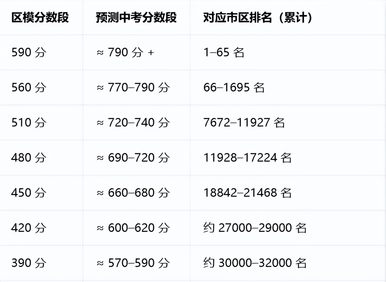 这里分享一套我自己琢磨的换算逻辑(也有瑕疵不足,仅供参考),适用于区模、一模、二模(越靠近中考参考性越强),但有个重要前提:仅适用于2026年中考的家长,明年进入后阳光招生时代,该算法因为学校里没有点招生源,也将失去意义。核心逻辑不是“分数对分数”,而是用“排名对排名”——通过孩子的校内排名,对照本校往年中考排名与全市排名的关联,反向推导中考分数和全市排名定位。这么说可能还是太笼统,很多家长还是看得云里雾里。这里举两个真实案例,大家一看就懂了: