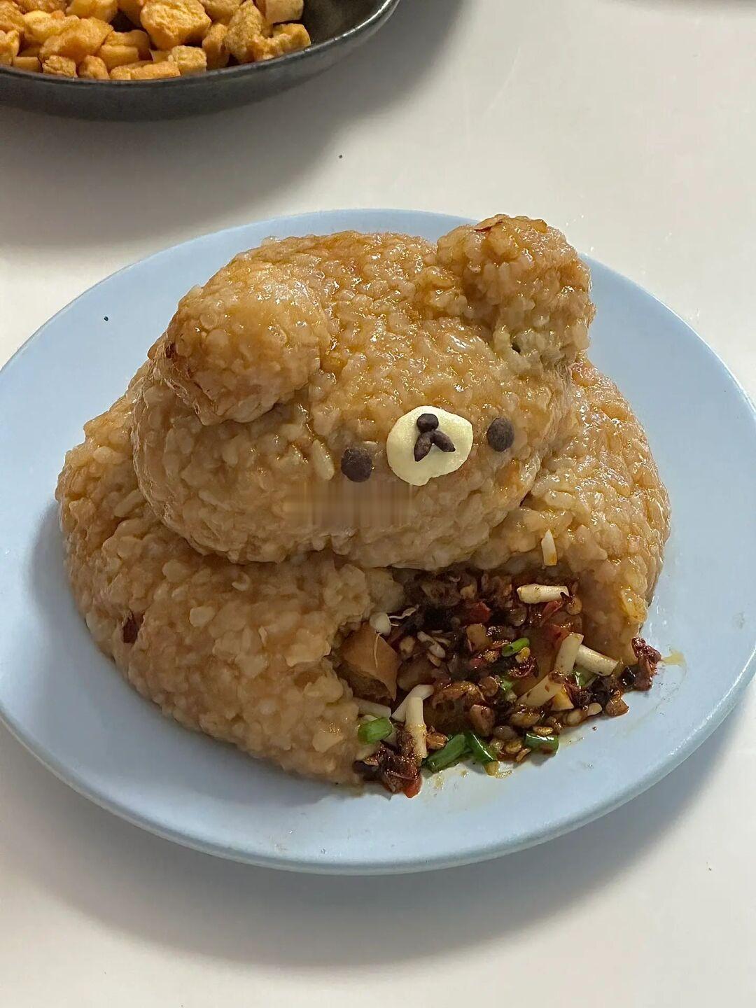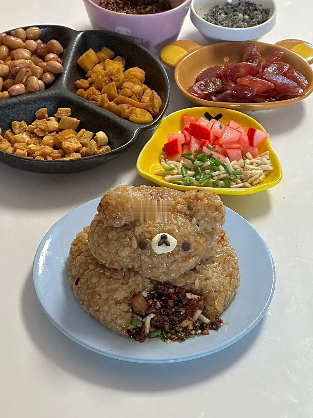 6.糯米蒸熟,加入猪油和酱油拌匀