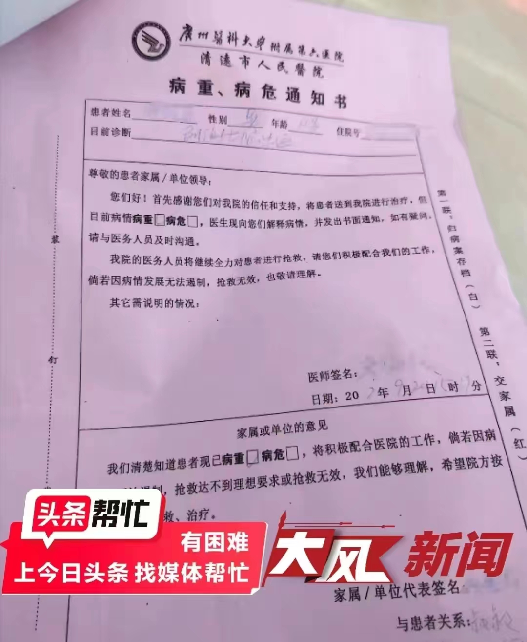 在9月20日上午11时许,老师打来电话称,孩子不舒服头晕有些发烧需要带回家休息,这个孩子11岁是留守儿童,在老家清远一所小学读书六年级。家长带回家后发现还是情况不对,于是到医院进行检查,发现脑溢血。最后从清远转到了广州,花了医药费5万多,期间还下达了病危通知书。目前孩子做了微创手术,手术后情况稍有改善,但是肢体活动仍然受限。
