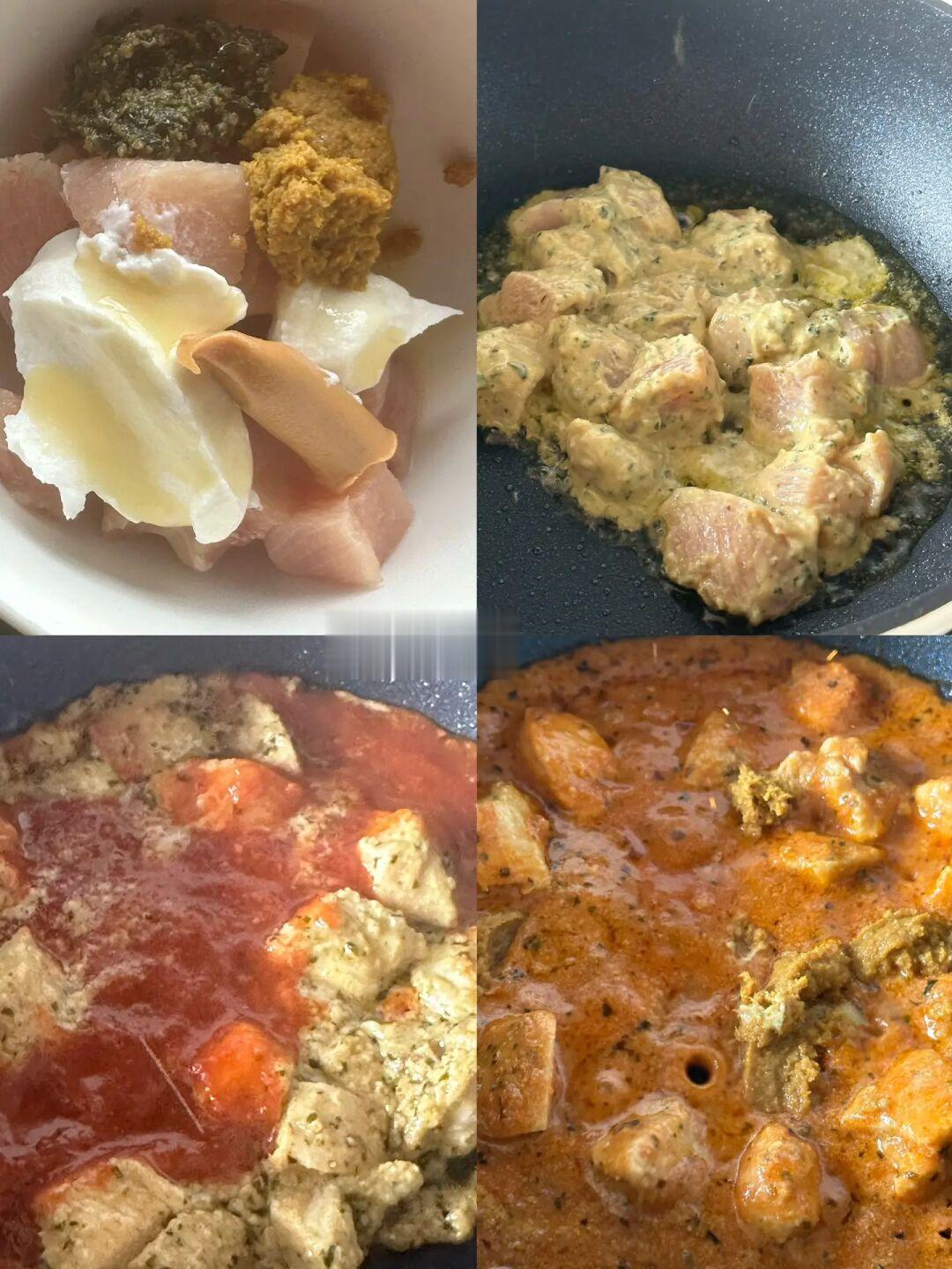 鸡肉腌料:浓稠酸奶(含糖)、花生酱、青咖喱酱、罗勒酱、蒜汁