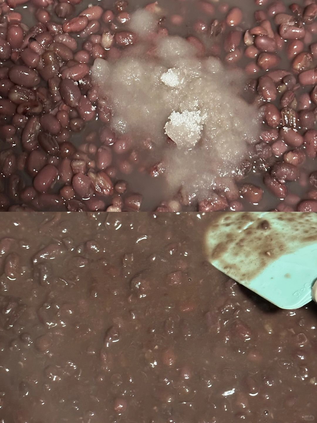 1.高压锅煮熟红豆,再边熬边用铲子压烂,加入糖搅拌均匀,煮成喜欢的浓稠度即可
