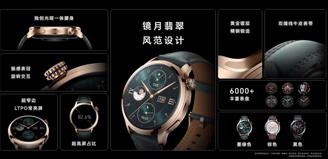 荣耀手表4Pro也来了,圆表盘设计,质感看起来非常不错。eSIM下都能待机10