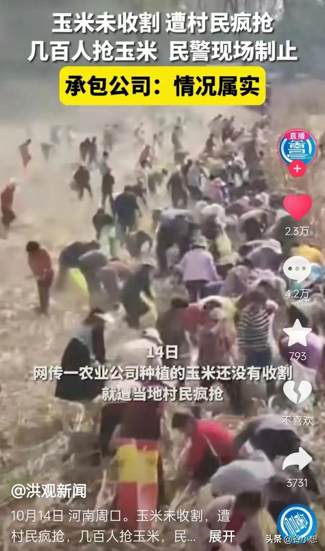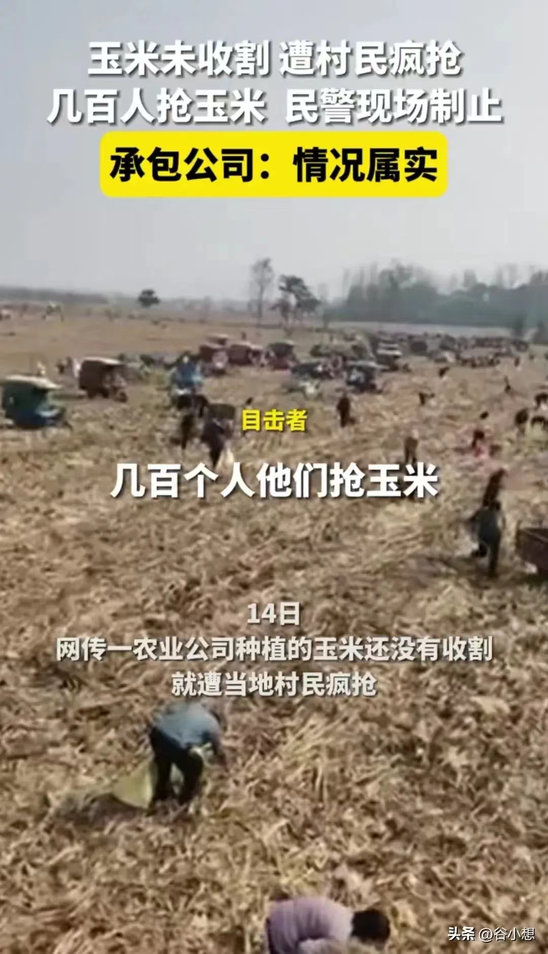 现在县里正在想办法解决此事,这几百人可不是带一个小袋子,捡也好抢也好,只拿一些玉米就走,而是开着电动车、三轮摩托,甚至是开着车过来弄玉米。这真正叫做集体哄抢。我们想想他们如果今年这么干了,那么明年这家农业生产公司还敢种玉米吗?未来还有人敢在这个地方投资建设吗?#河南疯抢玉米#