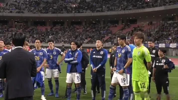 赛场一幕:日本队4-1战胜加拿大队后并没有被喜庆的胜利冲昏头脑 他们的球员依然在比赛结束后围在球场听主教练森保一训话 同时也对这场比赛进行复盘 据悉日本队这种习惯已经保持几十年了不管换哪个教练都一样 不得不说目前人家跻身世界一流强队不是没有原因的 不知道我们足协大佬们和国足球员们看到这样的场景 他们的内心是个怎样的感触?