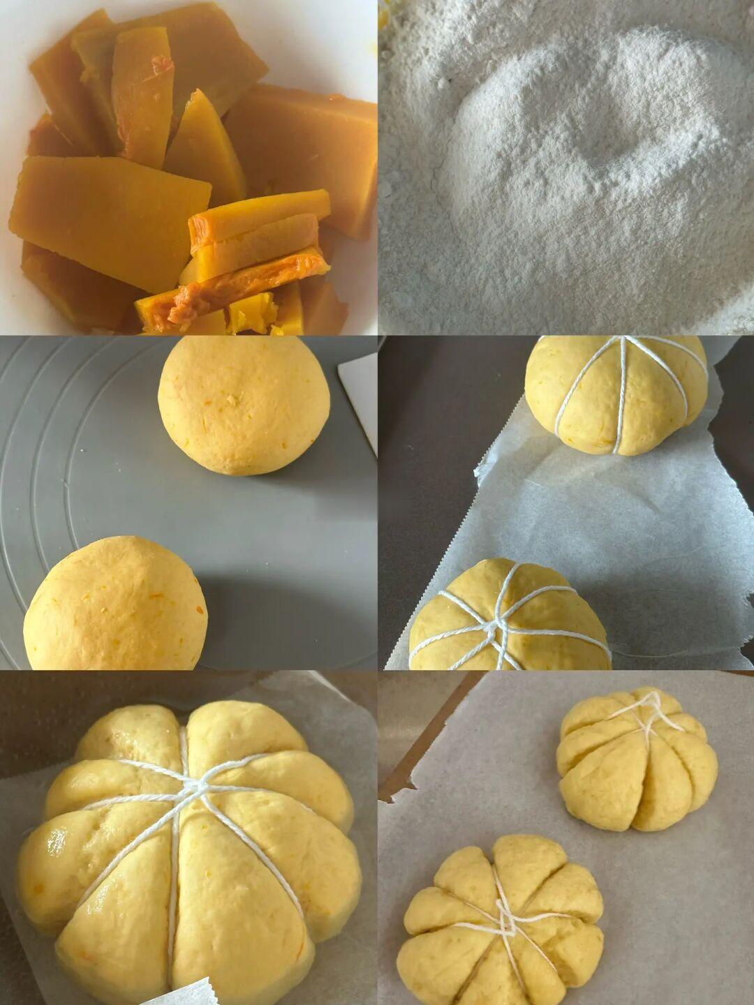 南瓜面团:35g南瓜泥、40g水、2g酵母、少许盐、105g高筋面粉