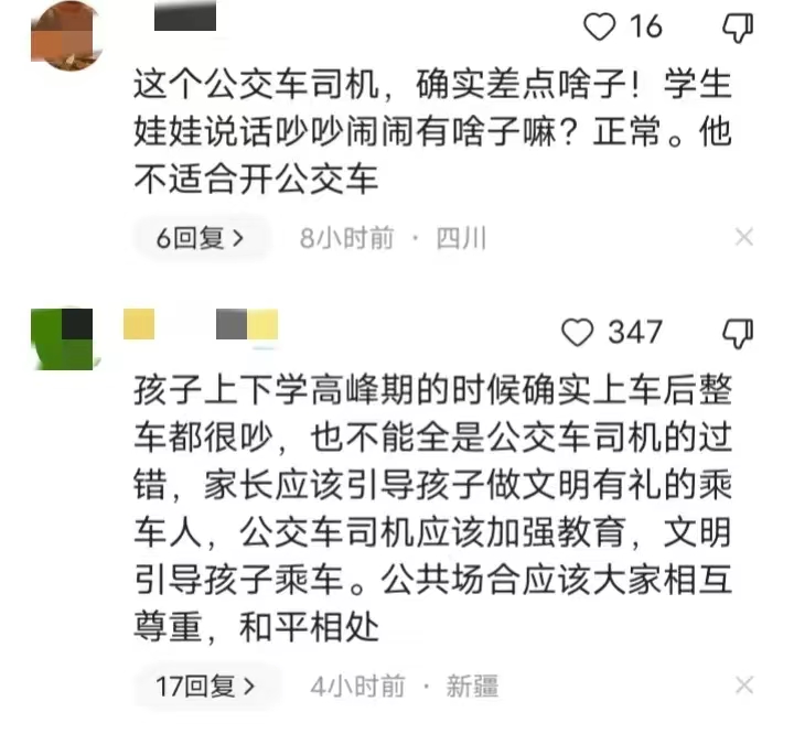 这是发生在10月16日的让人震惊的事件。如果站在这名公交车司机的立场上去想这个事儿,有可能平时这趟车会有很多上学的学生,而且平时可能也很吵闹。司机也已经忍了很久了,这一次终于忍不住了。如果站在乘客的角度去想这事,半大不小的学生本来就挺吵。这个年纪如果真的不吵,家长可能都觉得有事儿。所以有时候也真的能理解,这种吵闹。
