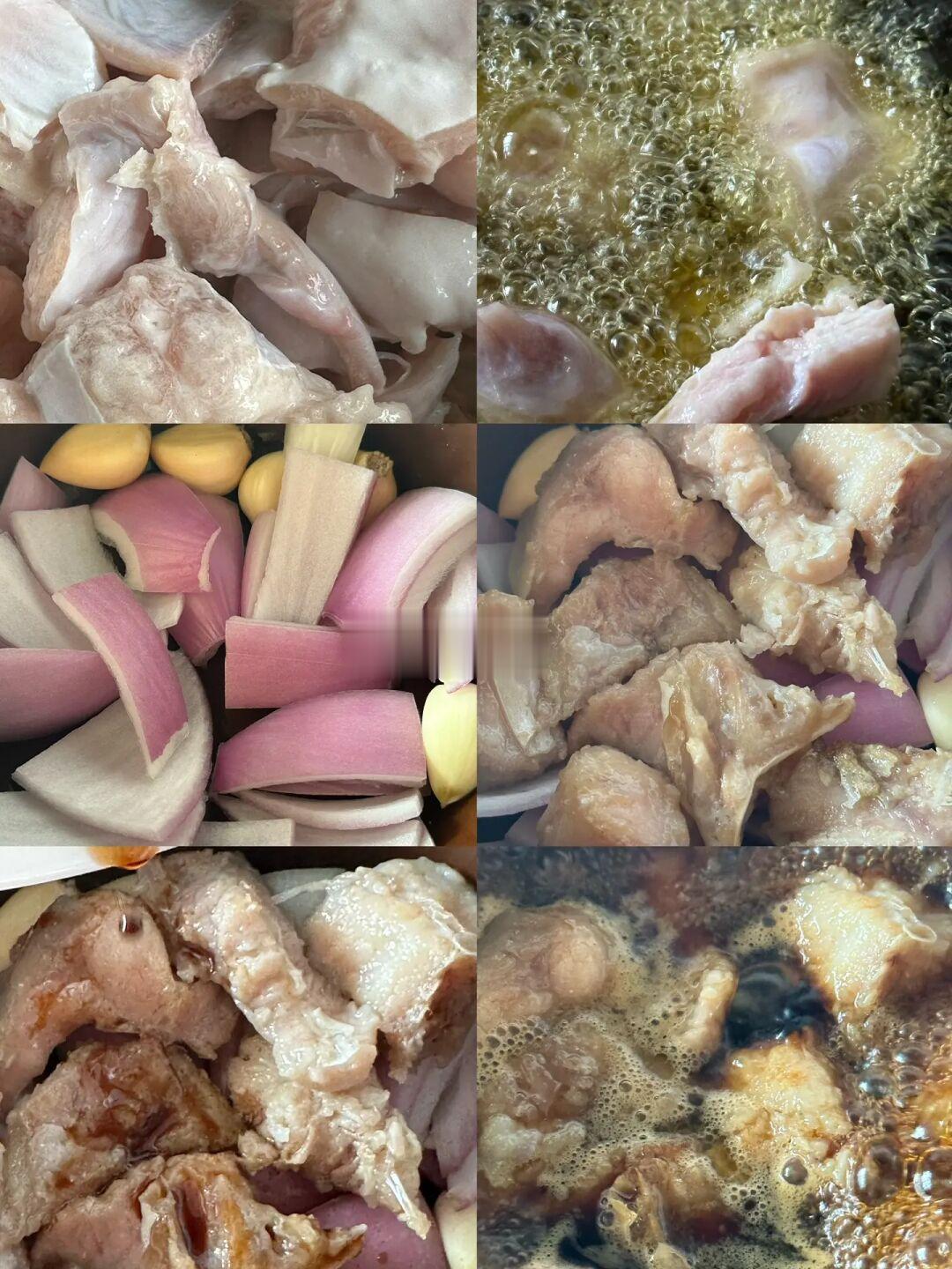鱼煲:鱼块、淀粉、蒜、洋葱、酱油、老抽、蚝油、糖、水淀粉(淀粉+水)