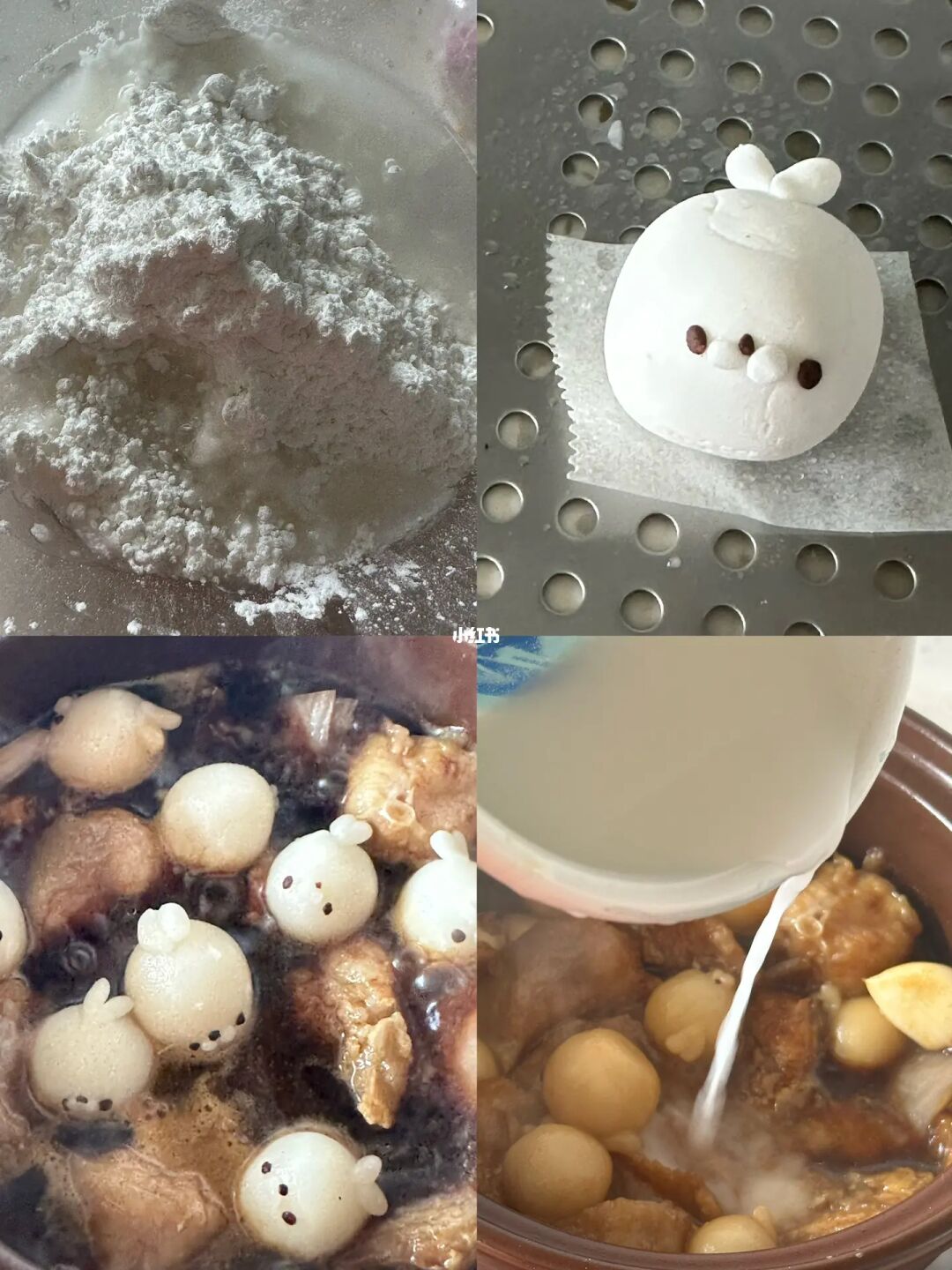 2.年糕配料混合后揉成团,做出海豹形象后,水开上锅蒸15分钟