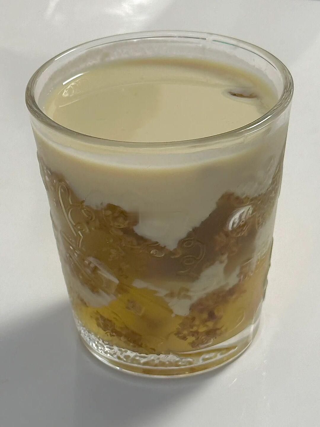 2.桂花冻配料混合后,放冰箱冷藏凝固后放入杯子,再倒入豆浆