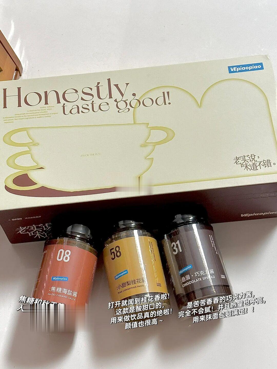 配料:下面用的几款酱都是VEpiaopiao烘焙甜点礼盒里面的,秋日气氛满满~