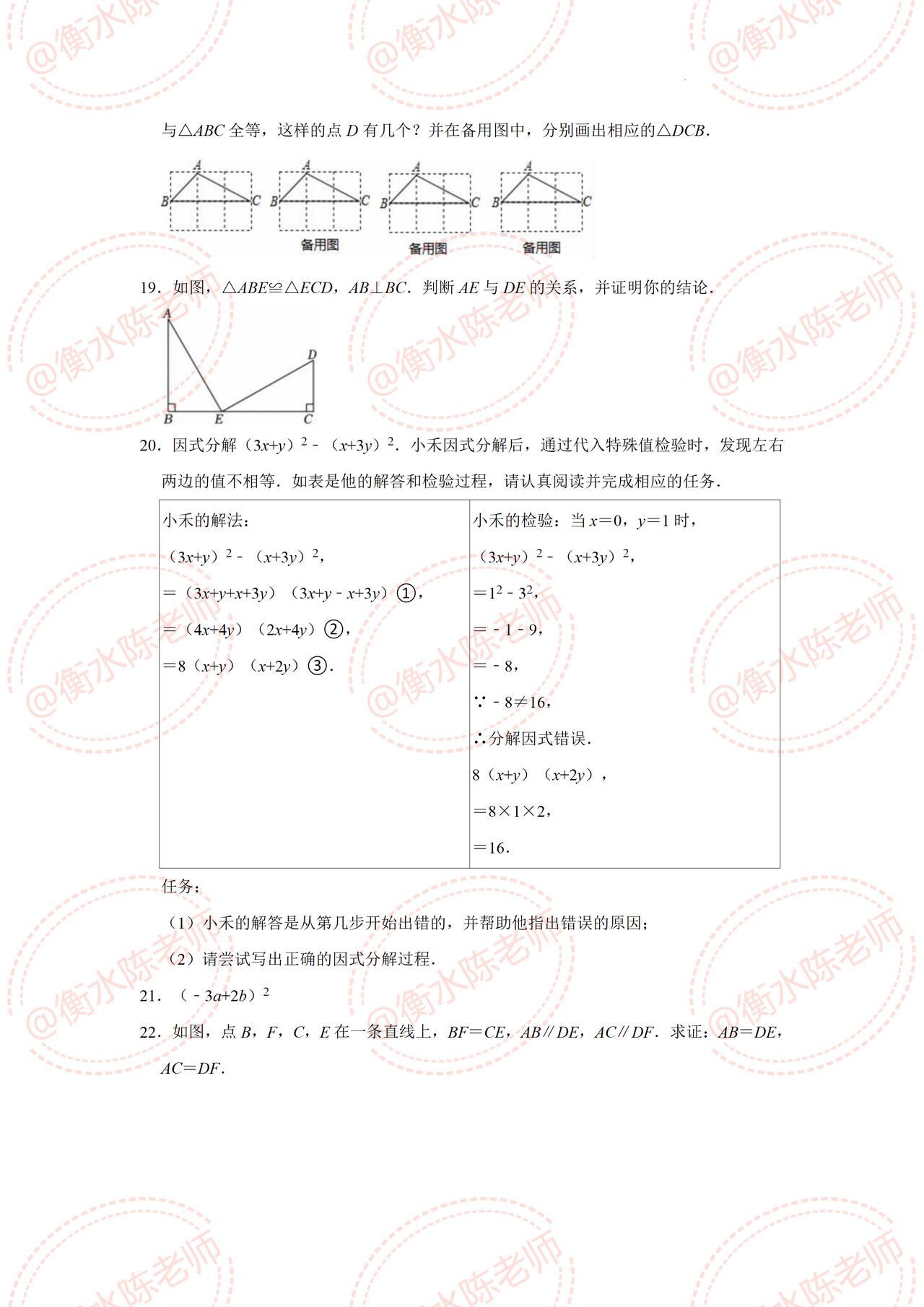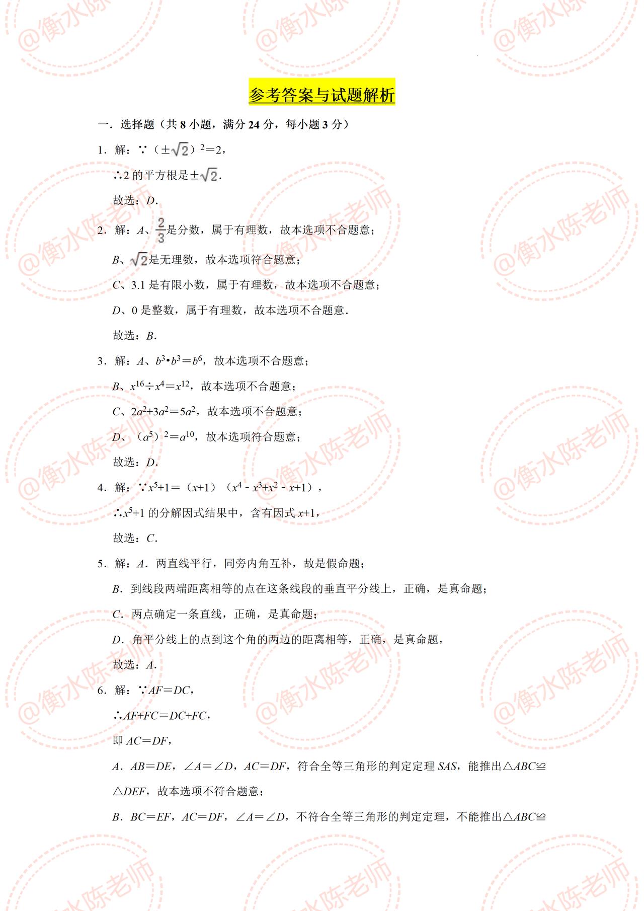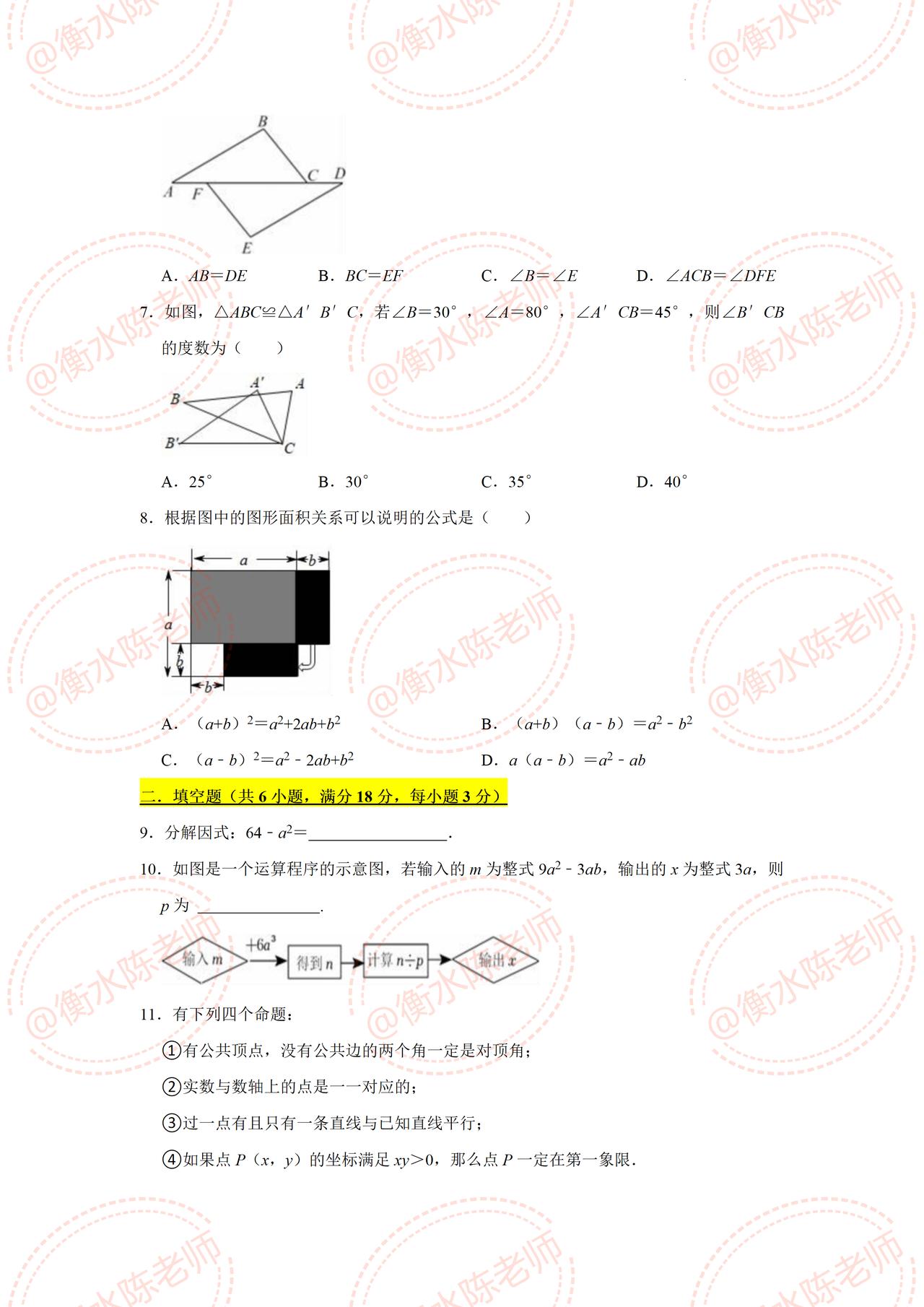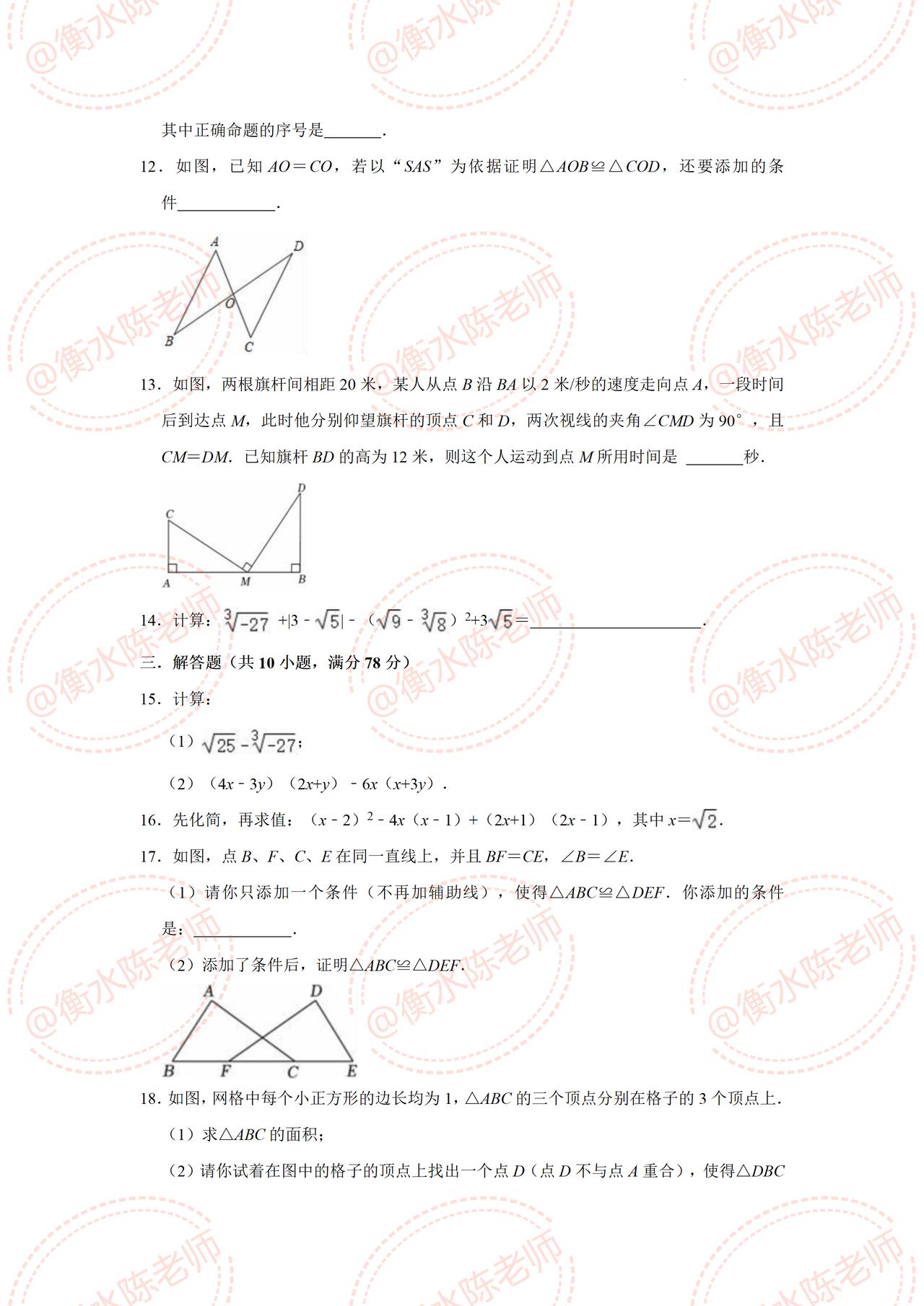 八年级上学期数学,第一学期【期中考试】重点试卷,提前发给同学们,考题都是根据不同的城市、版本,学校考试重点编写的,这次月考成绩不太理想,失去信心的考生,这次期中试卷把握好了哦,提前做一遍自己城市对应的期中试卷,考试中让你少走很多弯路,多挣很多考试分数哦,想要获取的同学,记得提前跟我沟通联系一下哦。