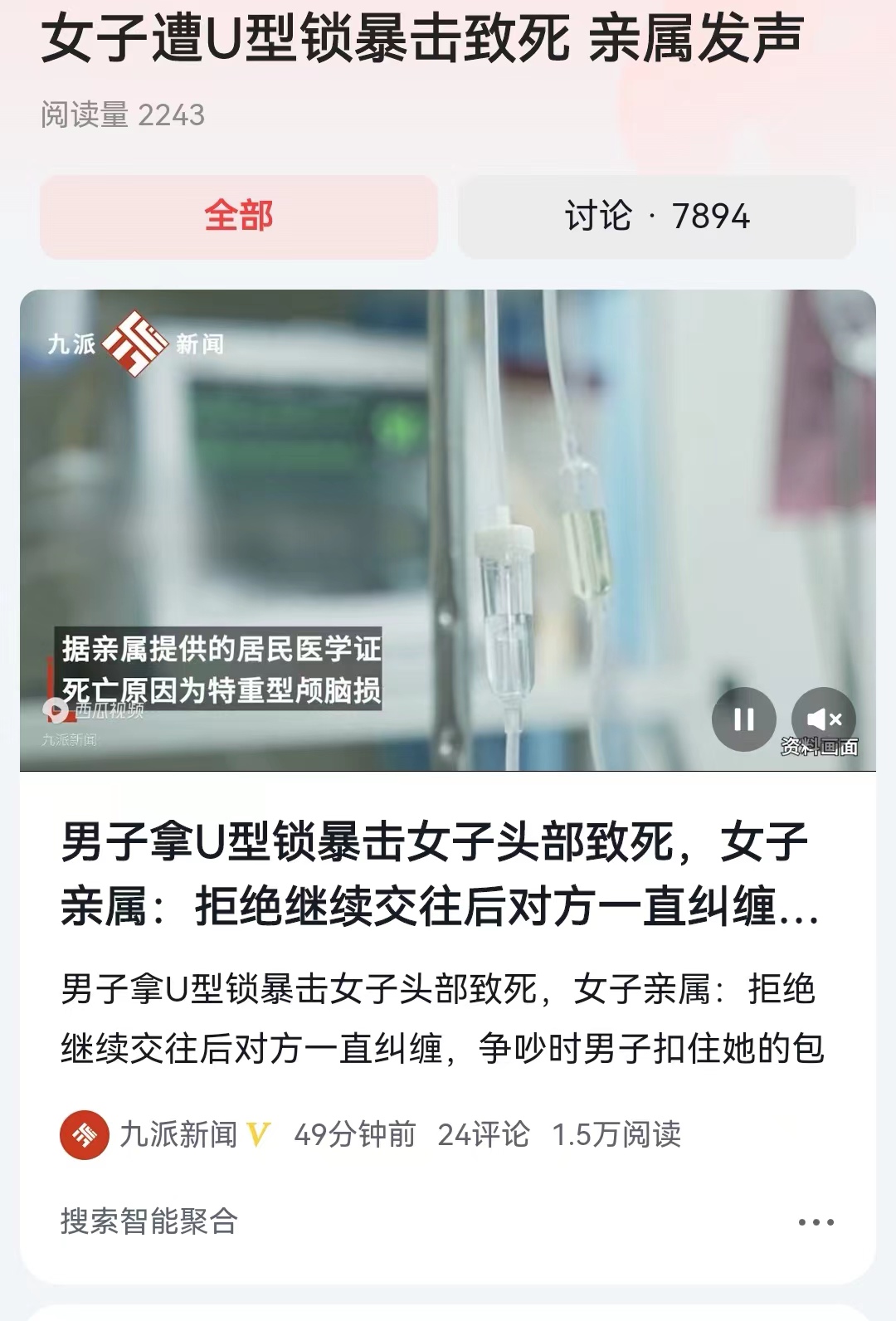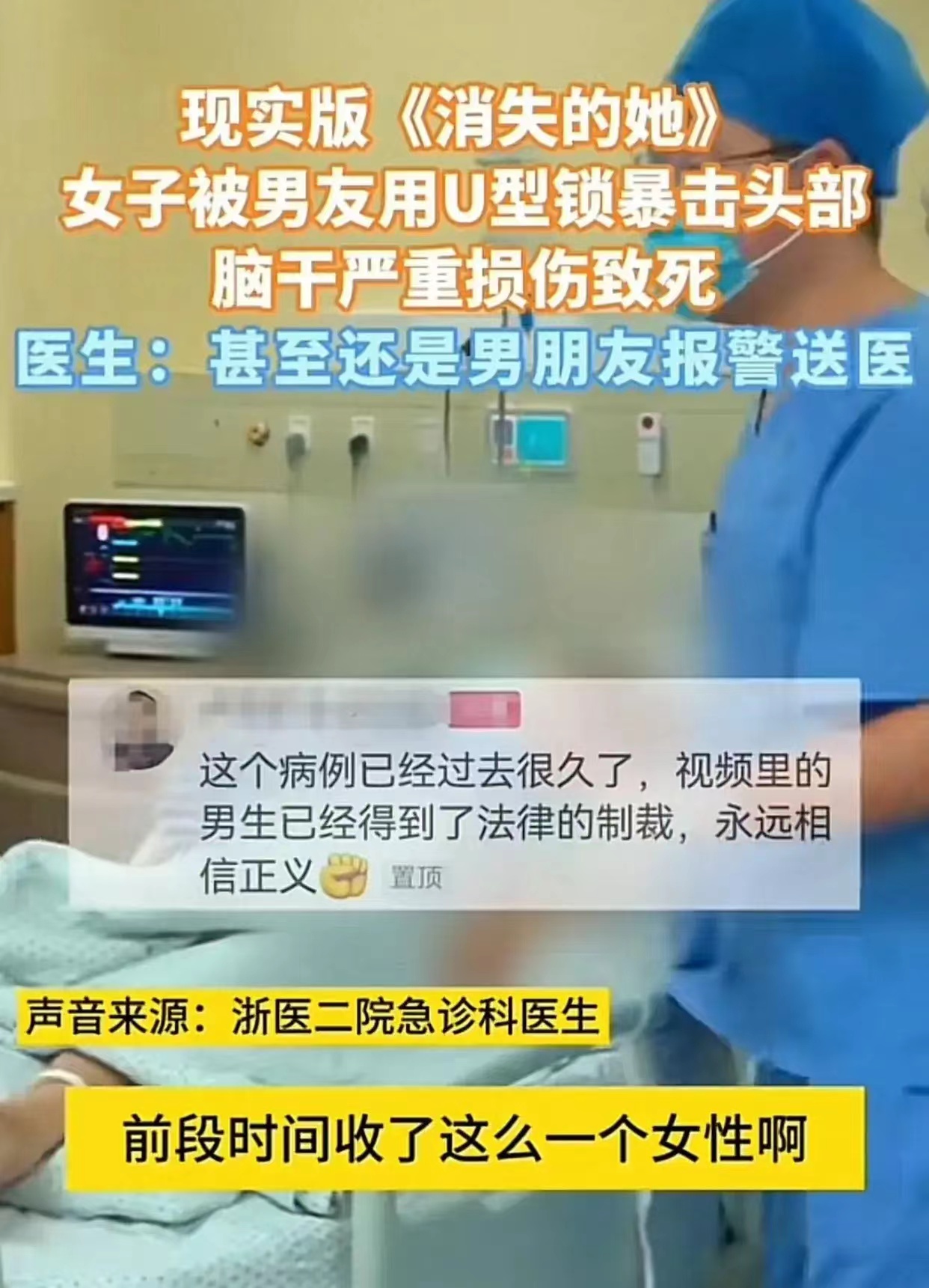 这是发生在浙江杭州8月26日的一件悲剧,30岁的女子与凶手交往一个多月,后来觉得不合适,不想再交往,男子不断纠缠。最终在这天晚上,女子同闺蜜在饭店吃饭时,男子赶到并发生争吵,最终女子想离开时,男子举起了电动车的U型锁,狠狠的砸向女子的头部,连续多下脑浆崩裂。事后接诊医生讲述已经没有救治的价值,但是被害人的父亲和亲属仍然想全力抢救,仍然无效死亡。