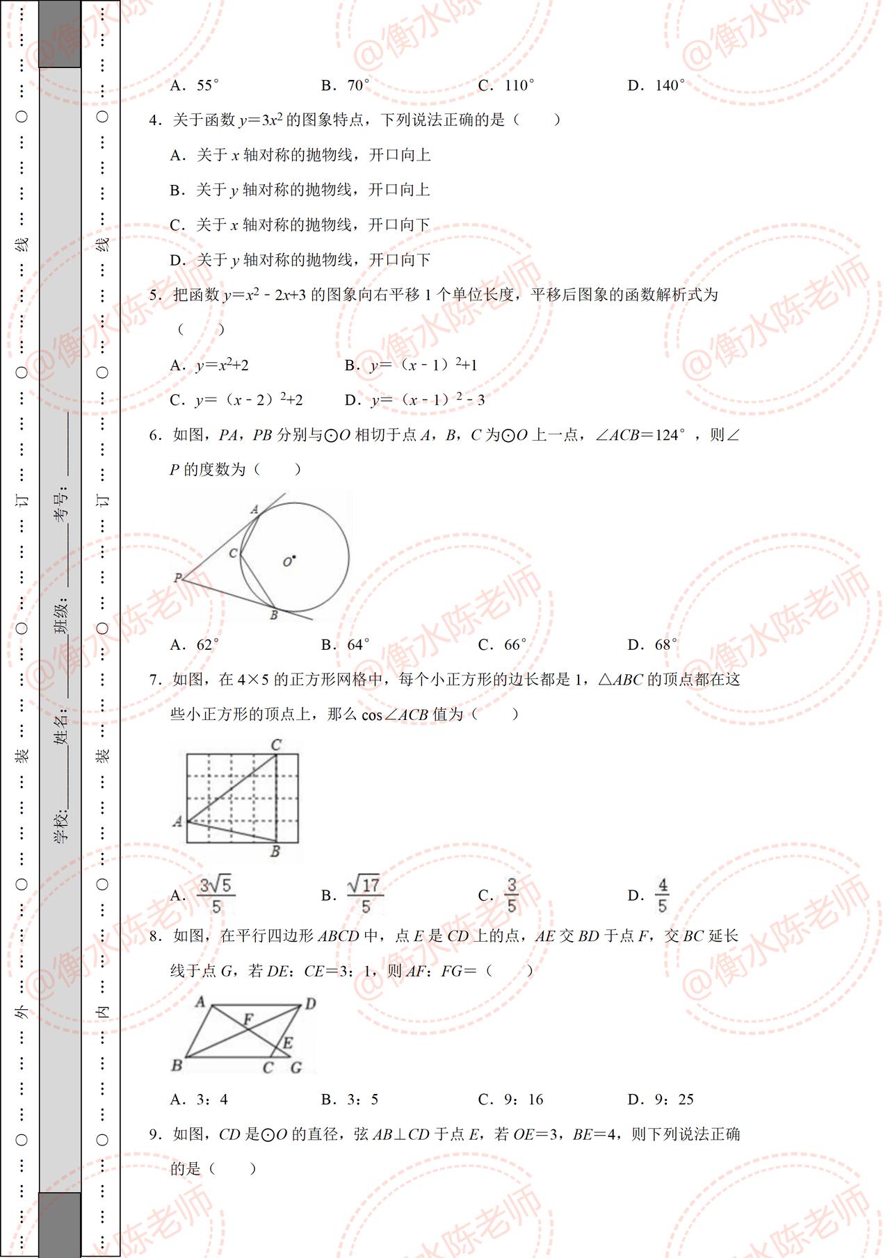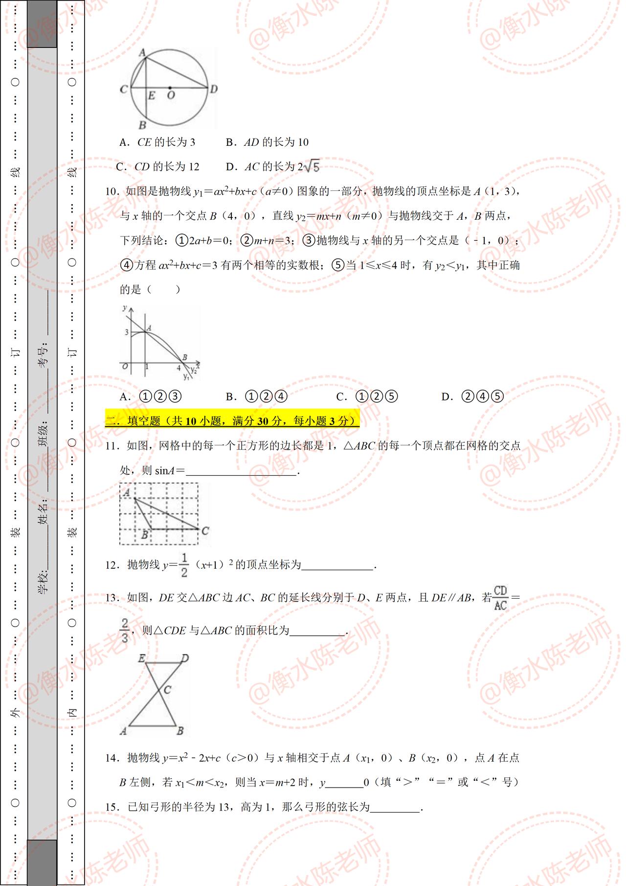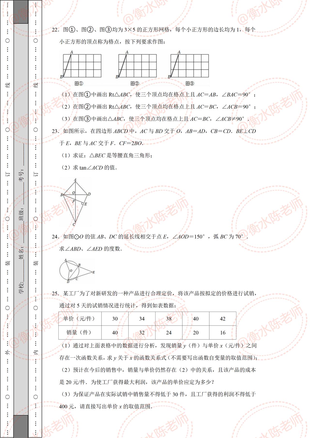 初三上册数学期中考试重点考题,根据不同城市、学校考试重点编写的热点考题,数学成绩比较差的,月考又没有考好的同学,提前做一遍自己城市编写的期中试卷,考题把握十分精准,让你少走很多弯路,考前做一遍,多考30分以上哦,想要的赶紧找我沟通一下吧。