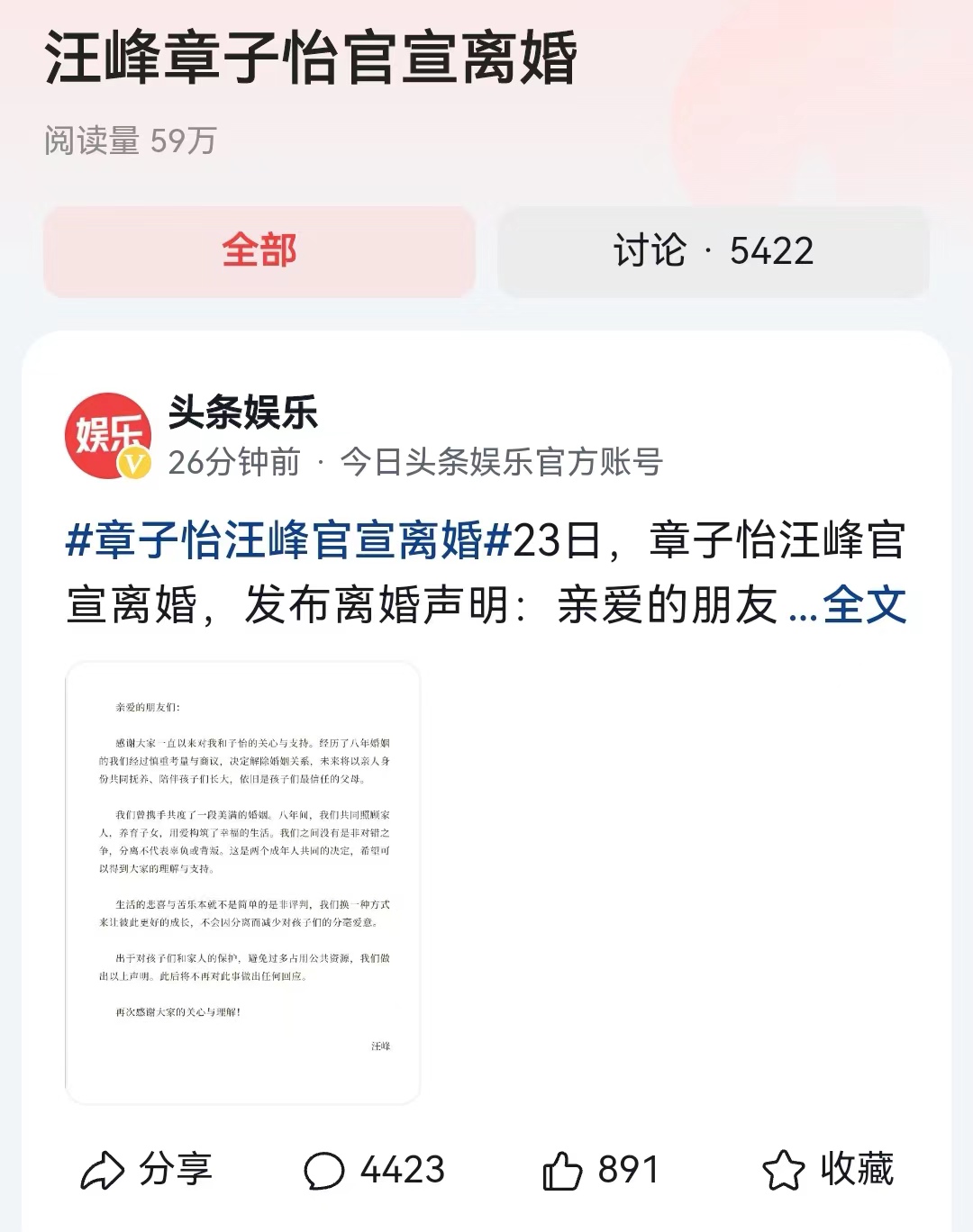 #汪峰章子怡官宣离婚#终于正式官宣了,有时候娱乐八卦也不是空穴来风,当事人也没有坚持多长时间,最终还是正式给民众一个交代。不过想想这一次,坚持了8年,而且两人还有一儿一女,已经算不错了!当年结婚快乐,也希望现在离婚也同样快乐。