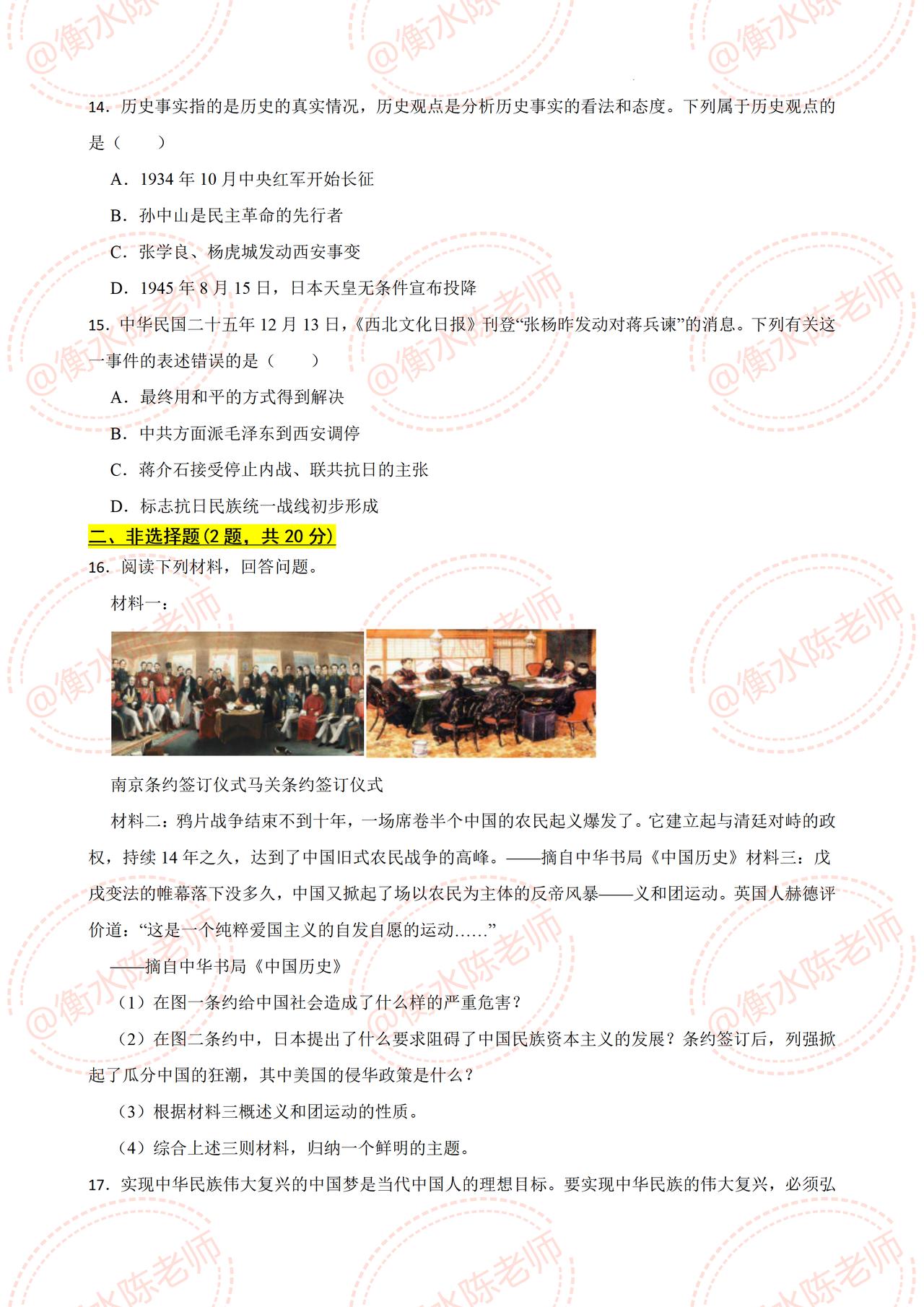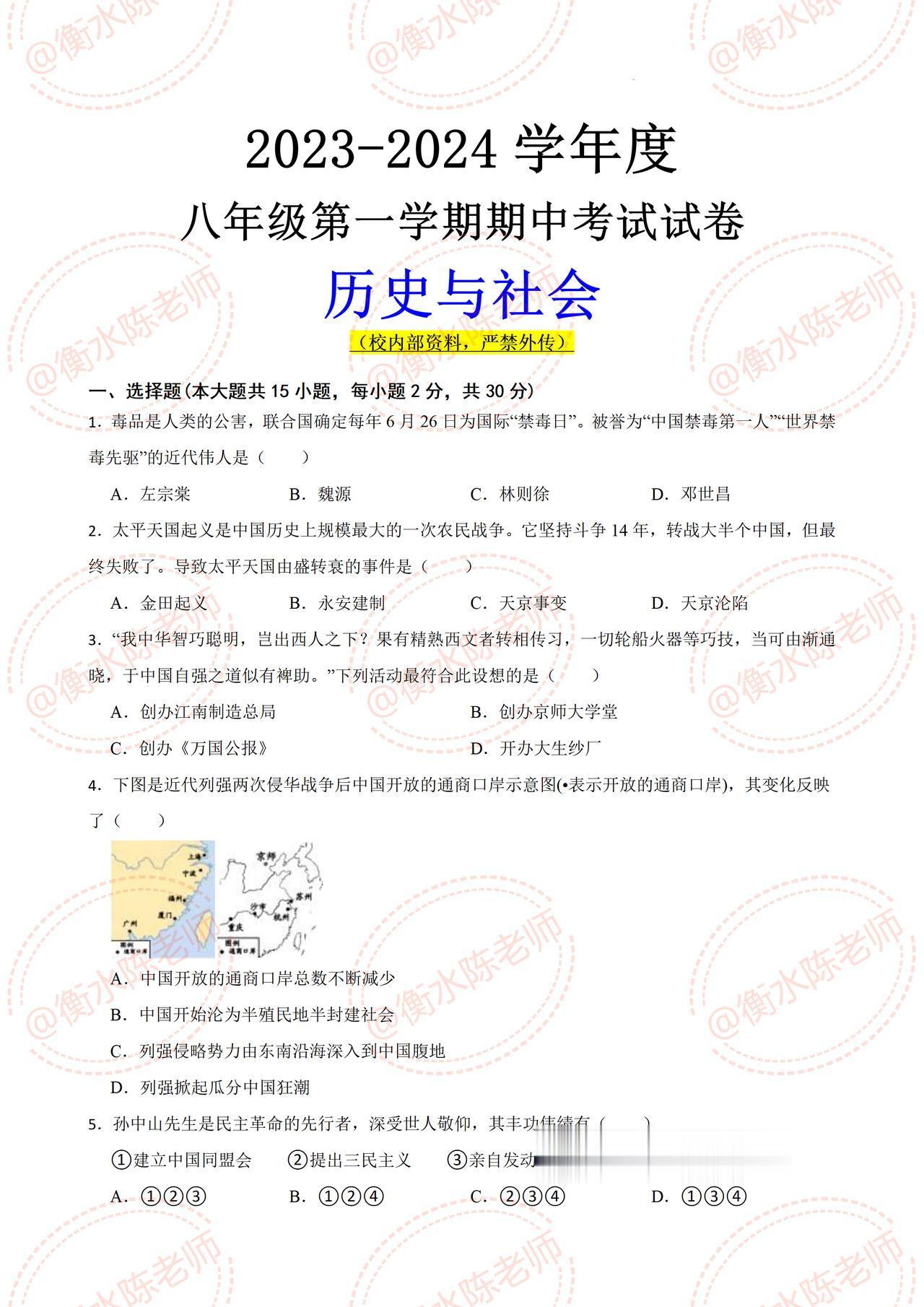按照浙江省份,不同的版本,学校考试重点编写的,八年级上学期【历史与社会】,第一学期【期中考试】必出重点考题发给同学们,这次期中想要获得好成绩,进入到班级前三,考试之前一定要做一遍自己城市对应的期中卷哦,想要获取的同学,记得和我聊一聊,沟通一下哦。
