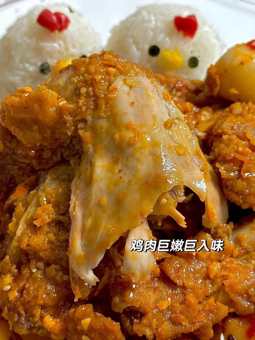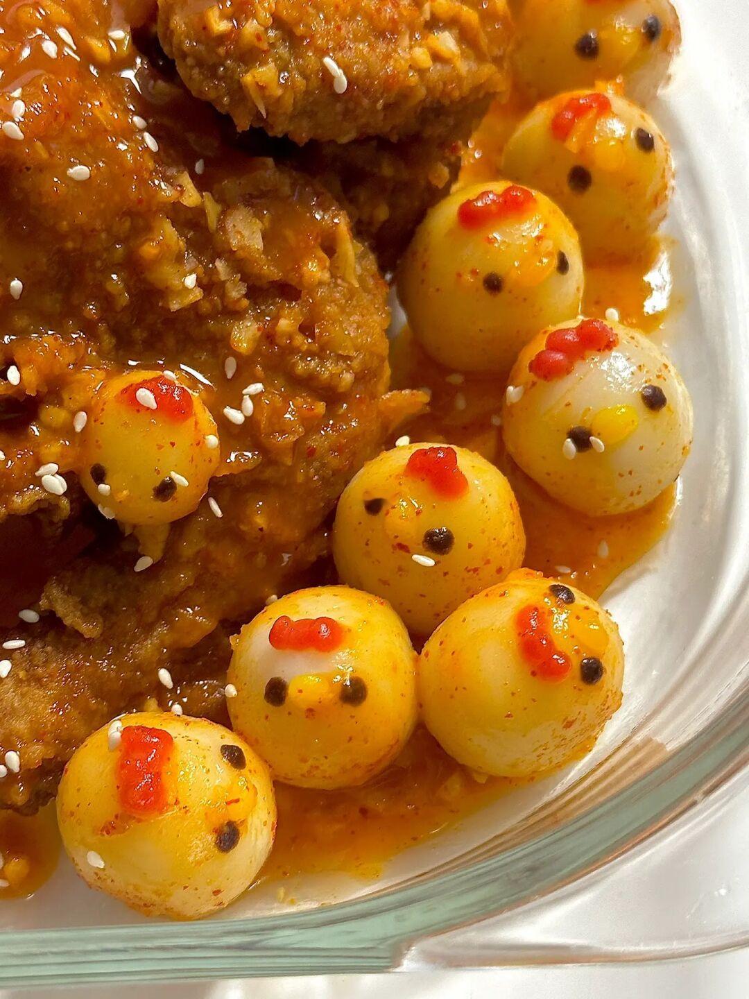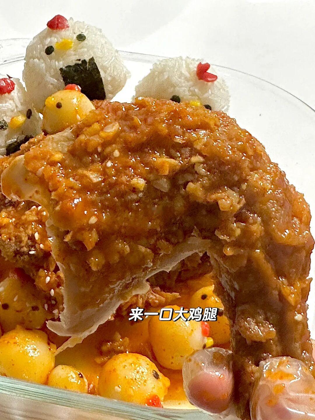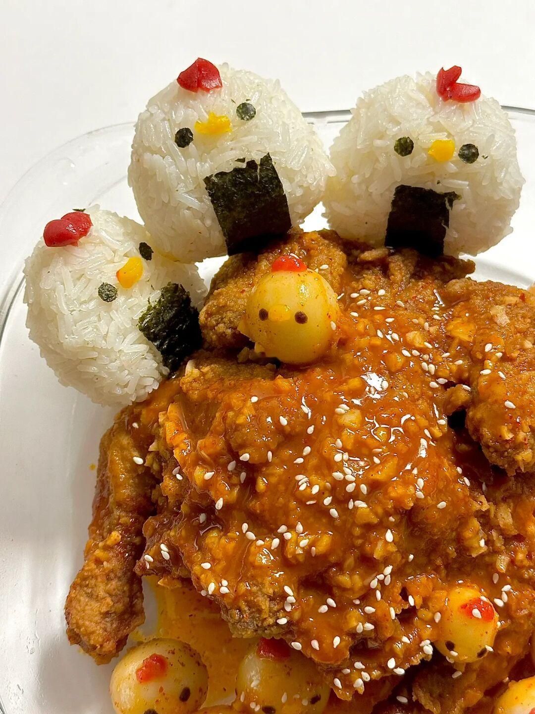 小鸡辣酱年糕炸鸡搭配饭团