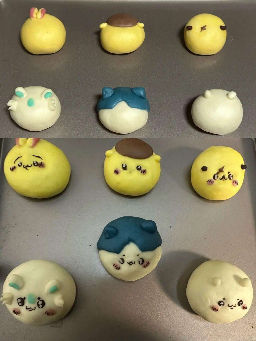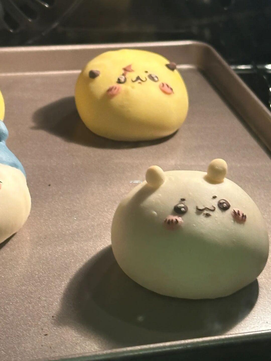 2.直接整形(先不做表情)发酵80分钟后再贴上表情
