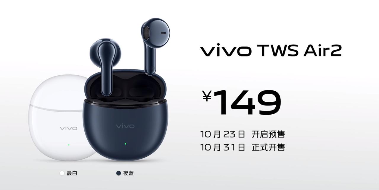 vivo TWS Air2,非常好的入门耳机定位,149。这个非常不错啊,基本功能都有,一百五能完整享受无线蓝牙耳机的便利。