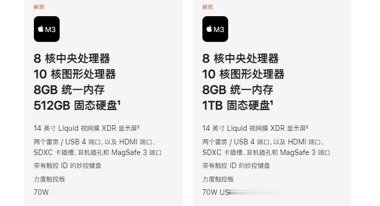 苹果的M系列芯片真的是成本控制的典范了,M3一个版本8C10G,M3 Pro竟然出现11核心的版本,基础是11C+14G,还有12C+18G。M3 Max也有两个版本, 14C+30G,16C+40G。等级非常森严,不过相比之前似乎稍微大方了一点。 这一代的主要提升,是在GPU。M3 Pro起步版本就可以得到18GB统一内存算是不错,但是内存贷款似乎倒吸牙膏了。