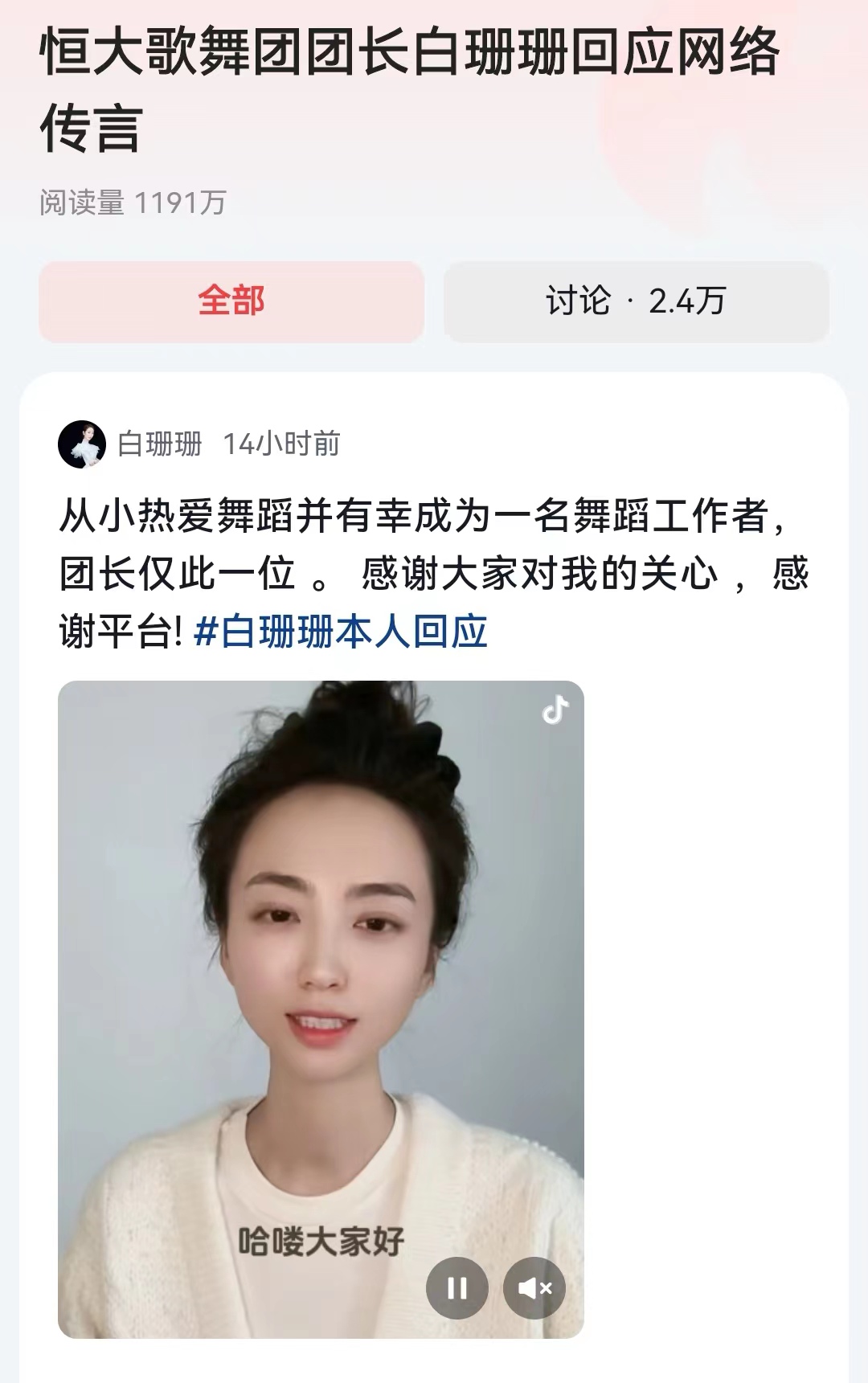 2.自己赚取的车、房、工资等等,都是有备案和记录的。其实这句话就啥也没说,不意味着他们的取得是合规合法的,或者是符合其付出的劳动对价的。而民众更想知道她一年的工资到底是多少?她是不是额外被奖励了,在内地和港岛都有别墅?她现在取得的收入和财富,与一个普通的舞蹈从业者付出的劳动是匹配的吗? 其实白珊珊真的不是很简单,你看这次视频回应,背面就是一堵白墙。让所有民众无法从中能判断出她到底身在何处。别看一个柔弱跳舞女子,看来在恒大的这么多年,锤炼的也是相当到位啊。