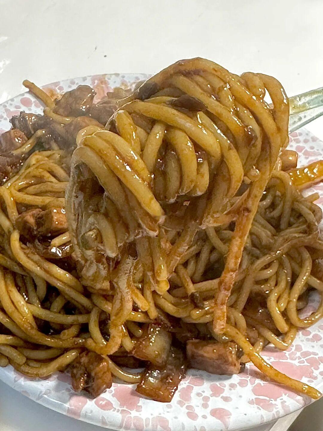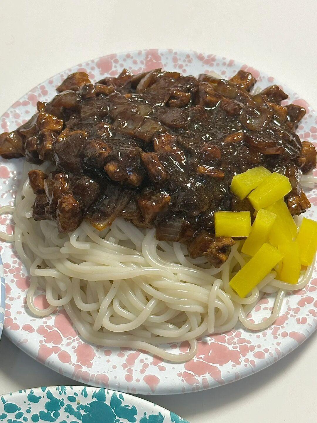 炸酱面:肉丁、洋葱、炸酱面酱、面条