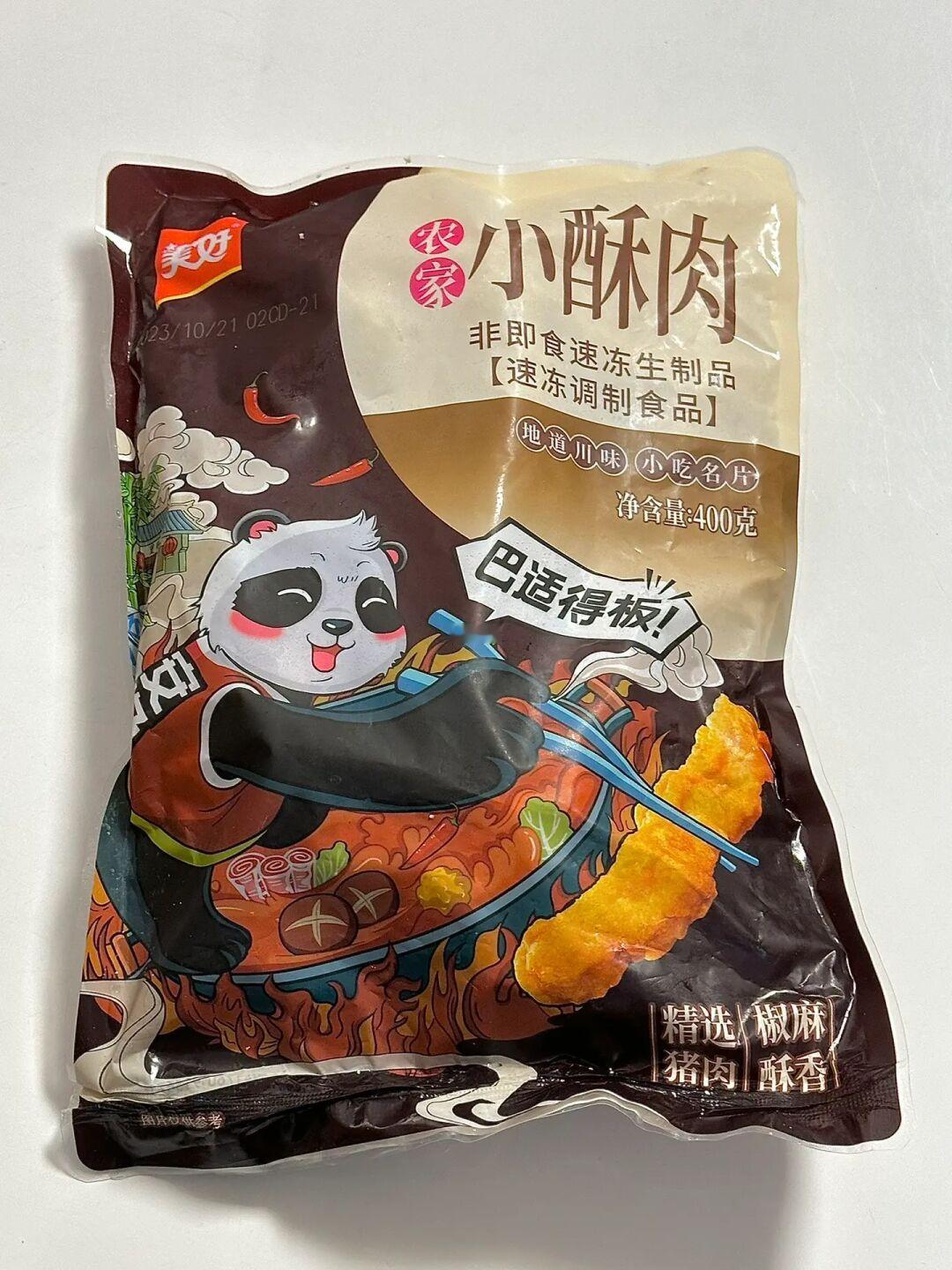 (这个牌子的小酥肉我真的从小吃到大!品质up up,肉质紧实不肥腻,真实花椒粒麻麻香香的,炸成金黄色就能吃啦~下次打算囤那个山姆新出的美好香酥小酥肉,1.8kg一大袋,够我尽情发挥厨艺,做给朋友家人吃也足够~)